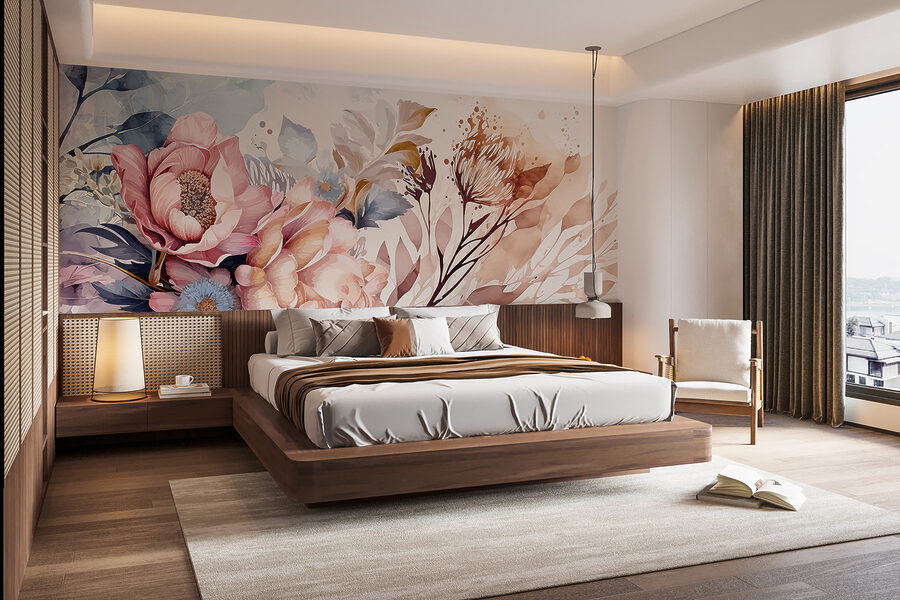 Imaginez : vous entrez dans une pièce et bam ! cette peinture murale vous accueille avec ses tourbillons luxuriants de fleurs et de feuilles. C’est comme entrer dans un jardin aquarelle de rêve, mais sans les insectes. Parfait pour ajouter une touche de nature sans avoir à arroser les plantes. L’ambiance est chaleureuse, comme si vous vous enveloppiez dans votre couverture préférée tout en sirotant un thé. Vos amis pourraient venir vous voir juste pour s’émerveiller de votre sens artistique. C’est le charme de la nature, capturé et imprimé, prêt à transformer n’importe quel mur en une histoire.
