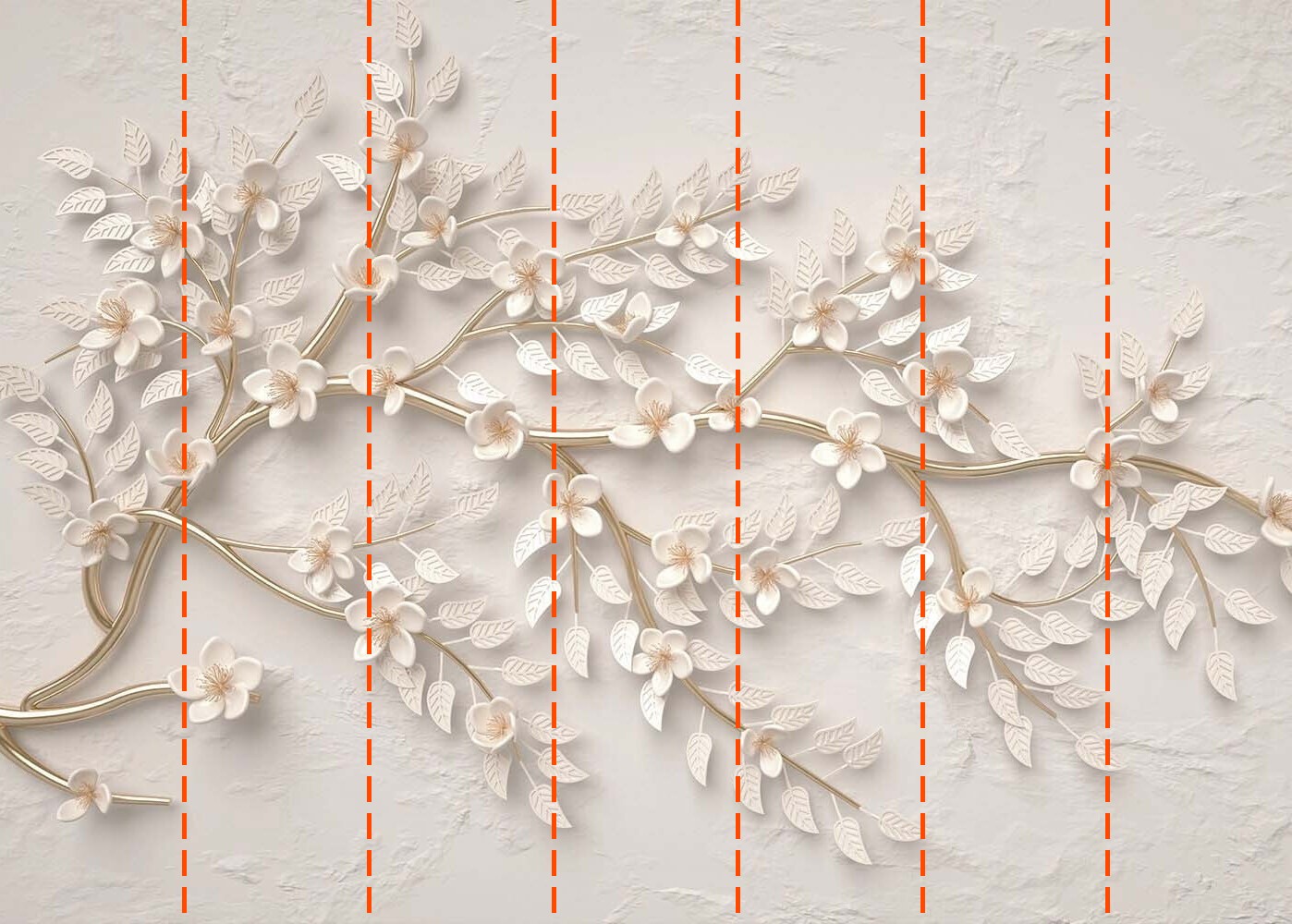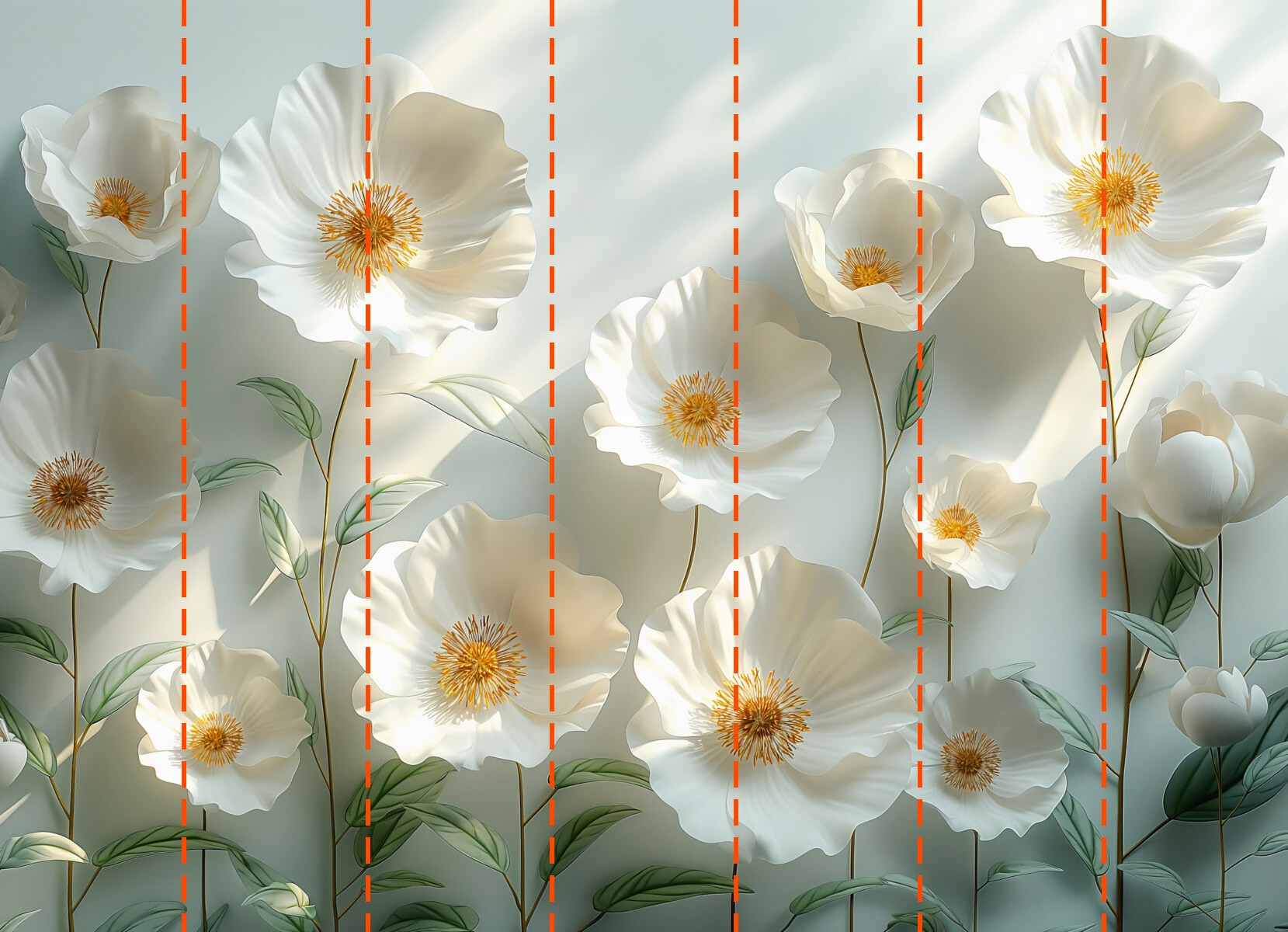 Votre papier peint sera préparé selon les dimensions que vous avez indiquées lors du processus de commande. La toile sera divisée en sections pratiques, chacune d’une largeur maximale de 50 cm.