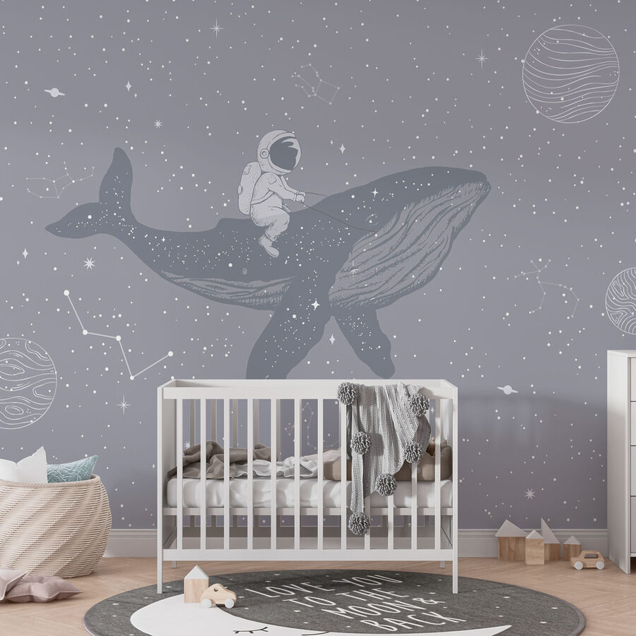 Imaginez que vous entriez dans une pièce et que vous trouviez un astronaute chevauchant nonchalamment une baleine dans l’espace. Une fresque murale tout droit sortie d’une histoire à dormir debout ! C’est comme si l’univers avait décidé de mélanger ses meilleurs animaux et galaxies pour une promenade fantaisiste. Parfaite pour les rêveurs et les observateurs d’étoiles, elle transformera n’importe quel mur en un paysage marin interstellaire. Sentez la magie – flottez parmi les étoiles et les planètes, tout en vous relaxant à la maison. Qui a besoin d’une télévision quand les vibrations cosmiques et une baleine géante et amicale vous accueillent ? Prêt pour l’aventure ? Plongez !