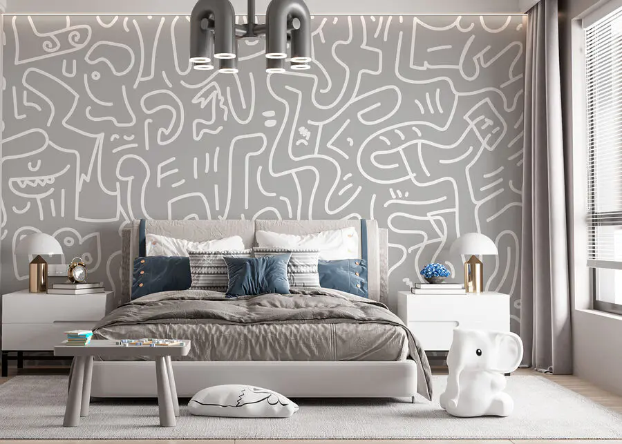 Imaginez que vous entriez dans votre espace et que vous soyez accueilli par les tourbillons ludiques de cette peinture murale grise et blanche. C’est comme si l’art moderne avait décidé d’organiser une fête sur votre mur, et tout le monde est invité. Parfaite pour ceux qui recherchent un mélange de style et de fantaisie, cette pièce ajoute une touche de design sans se prendre trop au sérieux. C’est une toile de fond pour vos pensées créatives ou l’amorce idéale d’une conversation. Vous aurez l’impression que votre pièce vous fait un câlin doux et élégant à chaque fois que vous y entrez. Pourquoi se contenter de l’ordinaire quand on peut avoir cela ?