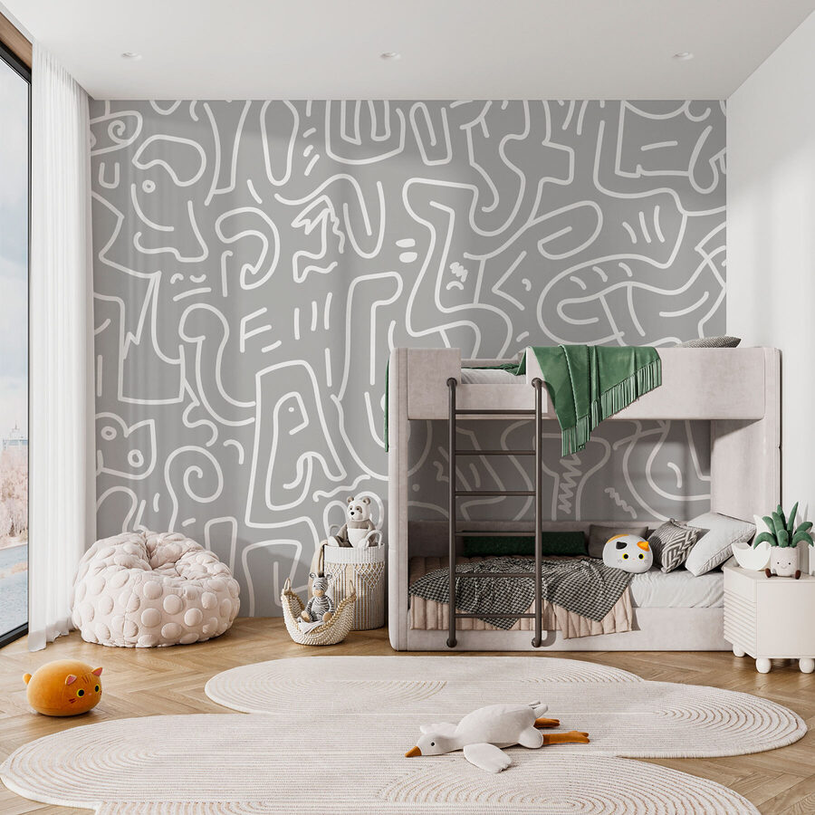 Imaginez que vous entriez dans votre espace et que vous soyez accueilli par les tourbillons ludiques de cette peinture murale grise et blanche. C’est comme si l’art moderne avait décidé d’organiser une fête sur votre mur, et tout le monde est invité. Parfaite pour ceux qui recherchent un mélange de style et de fantaisie, cette pièce ajoute une touche de design sans se prendre trop au sérieux. C’est une toile de fond pour vos pensées créatives ou l’amorce idéale d’une conversation. Vous aurez l’impression que votre pièce vous fait un câlin doux et élégant à chaque fois que vous y entrez. Pourquoi se contenter de l’ordinaire quand on peut avoir cela ?