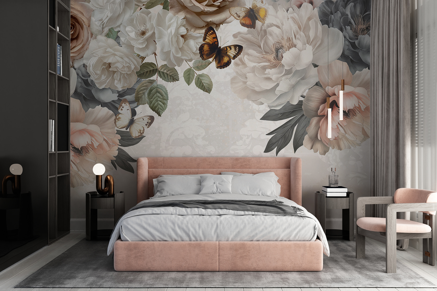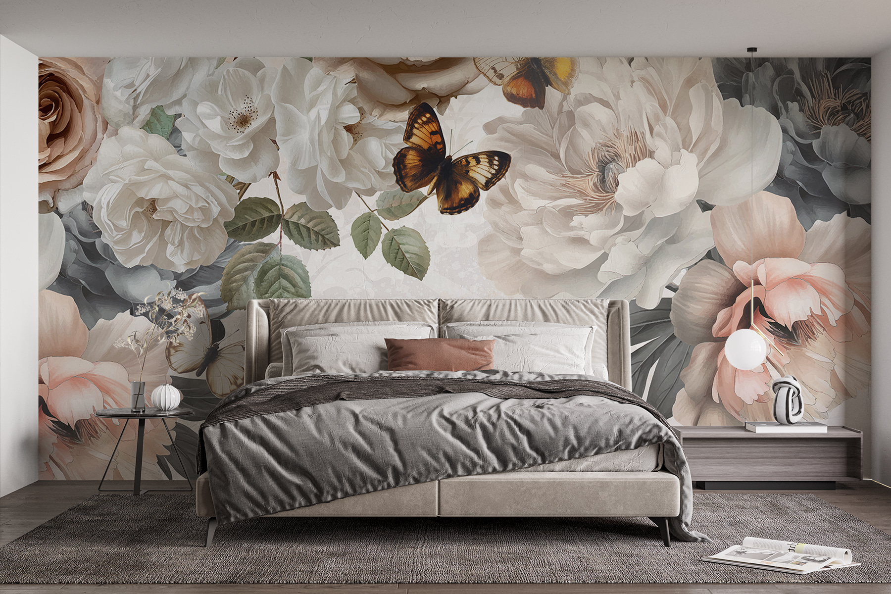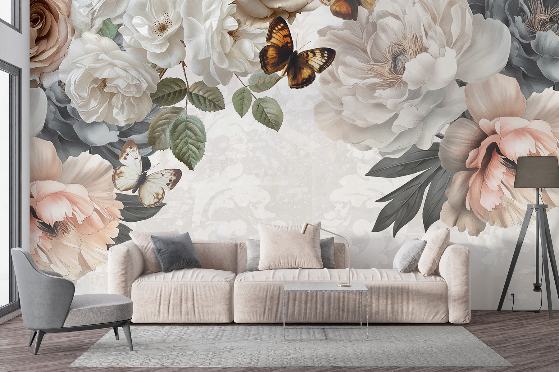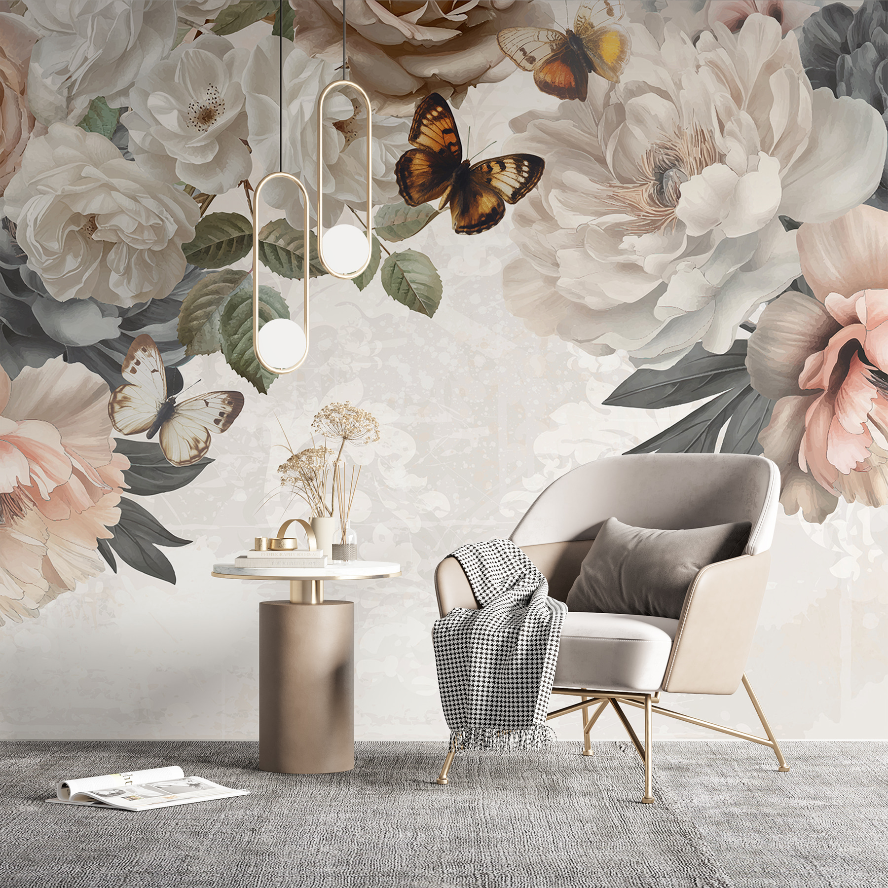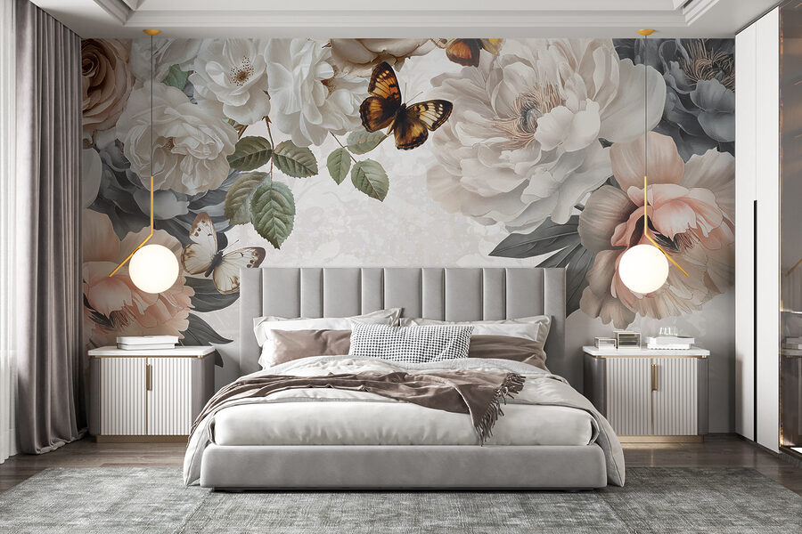 Imaginez que vous entrez dans une pièce et que vous avez l’impression de pénétrer dans un jardin de rêve avec une légère brise sur le visage. Cette peinture murale “Groupe de fleurs avec papillons” n’est pas seulement un décor, c’est une évasion. Des roses et des pivoines dansent, tandis que des papillons volants ajoutent une touche de fantaisie. Parfait pour tous ceux qui pensent que les murs ne doivent pas se contenter de soutenir le toit, mais qu’ils doivent aussi chuchoter des histoires. La vie de tous les jours devient un peu moins ordinaire et beaucoup plus belle. Idéal pour les espaces qui veulent une touche de charme naturel !