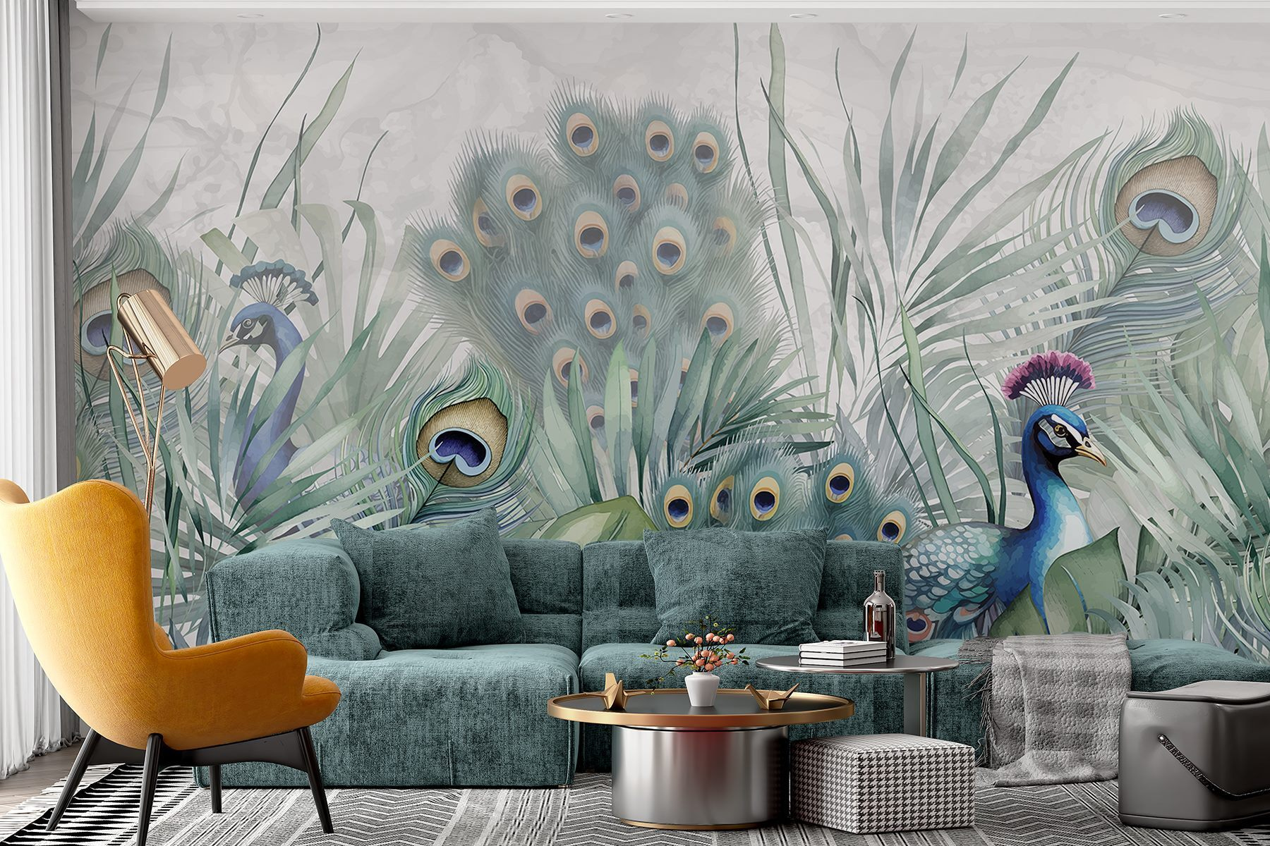 Imaginez que vous entrez dans une pièce où les plumes vibrantes d’un paon et la verdure luxuriante vous accueillent tous les jours – une remontée immédiate de l’humeur, n’est-ce pas ? Cette peinture murale “Paons et plantes” donne de la vie à n’importe quel mur, invitant au calme et à la couleur. Parfaite pour une décoration cool, c’est comme une œuvre d’art de la nature. Vous pourriez même vous surprendre à parler aux paons – la faute aux détails captivants ! Que ce soit dans votre salon ou dans un coin lecture confortable, cette pièce ajoute une touche d’élégance et de fantaisie. Allez-y, transformez votre mur en chef-d’œuvre !