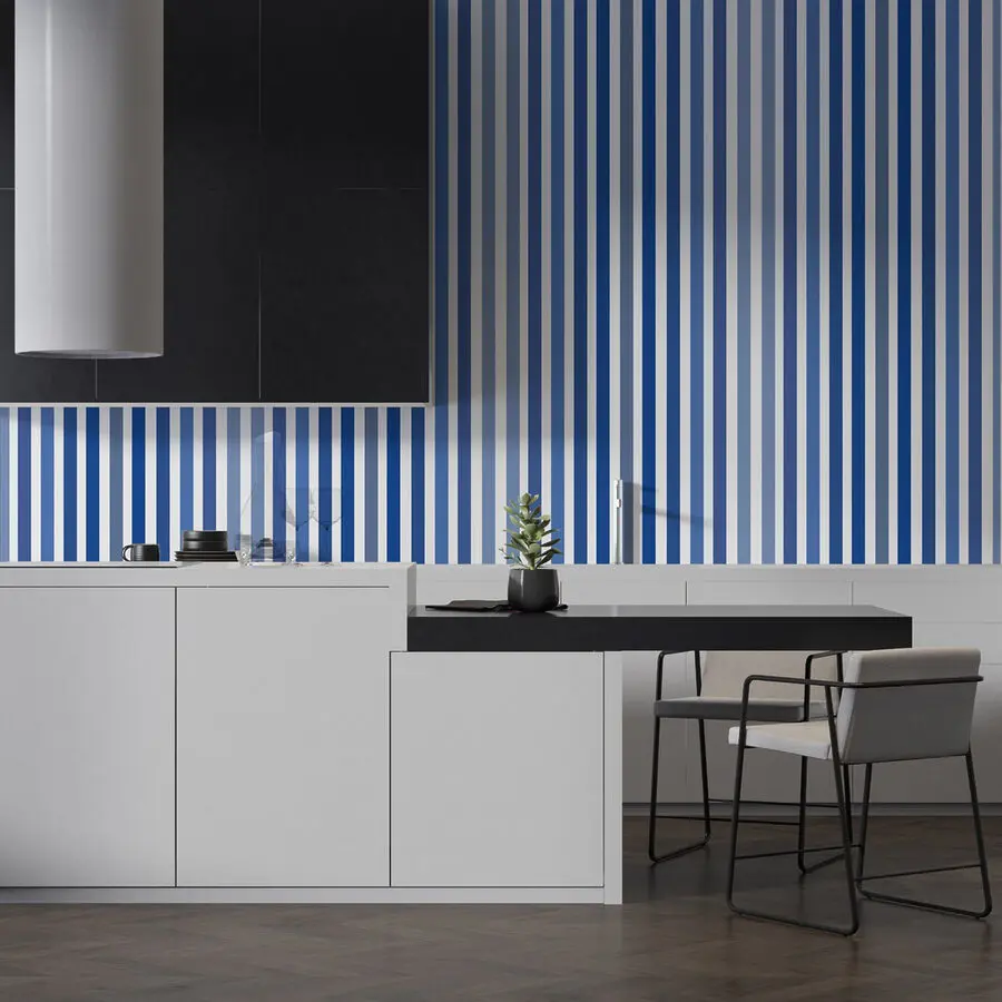 Imaginez que vous entrez dans une pièce et que vous avez l’impression d’être enveloppé dans une douillette couverture de bord de mer. La peinture murale “Blue and White Striped” capture parfaitement cette ambiance. Il offre une sensation de fraîcheur et de légèreté, comme votre journée de plage préférée, mais avec moins de coups de soleil. Les rayures sont juste ce qu’il faut d’audacieux, pour s’imposer sans crier gare. Associez-le à un fauteuil confortable et à un bon livre, et il murmure pratiquement “relax”. Parfait pour un espace qui a besoin d’une touche de style mélangée à une touche de fantaisie nautique. Déroulez un peu de bonheur sur vos murs !