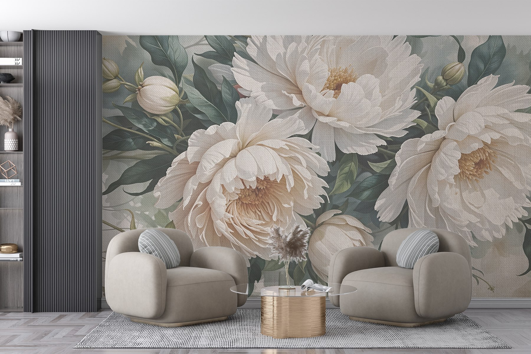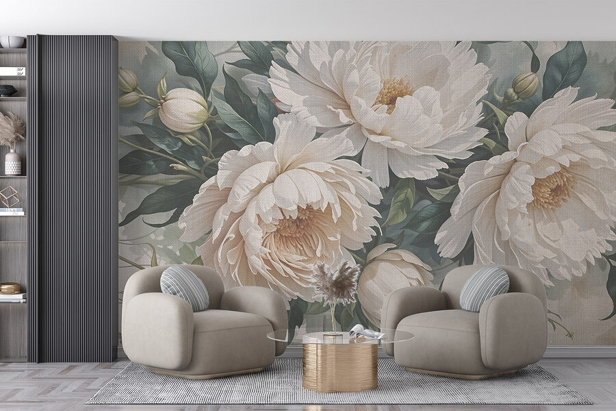 Transformez n’importe quel espace avec la peinture murale enchanteresse “Delicate Blooms in Soft Hues”. Imaginez que vous pénétrez dans un jardin serein où les pivoines fleurissent dans des chuchotements doucement ombragés de blanc et de vert. Ce motif n’apporte pas seulement de la beauté, mais aussi un air de calme qui ressemble à une douce étreinte après une longue journée. Parfait pour un coin lecture confortable ou une chambre à coucher de rêve, c’est comme si vous aviez un morceau de nature à l’intérieur. Des amis pourraient passer, admirer votre mur et, soudain, vous deviendrez l’hôte qui en a le plus – bonne chance pour les empêcher d’emménager ! Ajoutez une touche d’élégance à votre décor, car qui ne voudrait pas d’un ami fleuri sur son mur ?