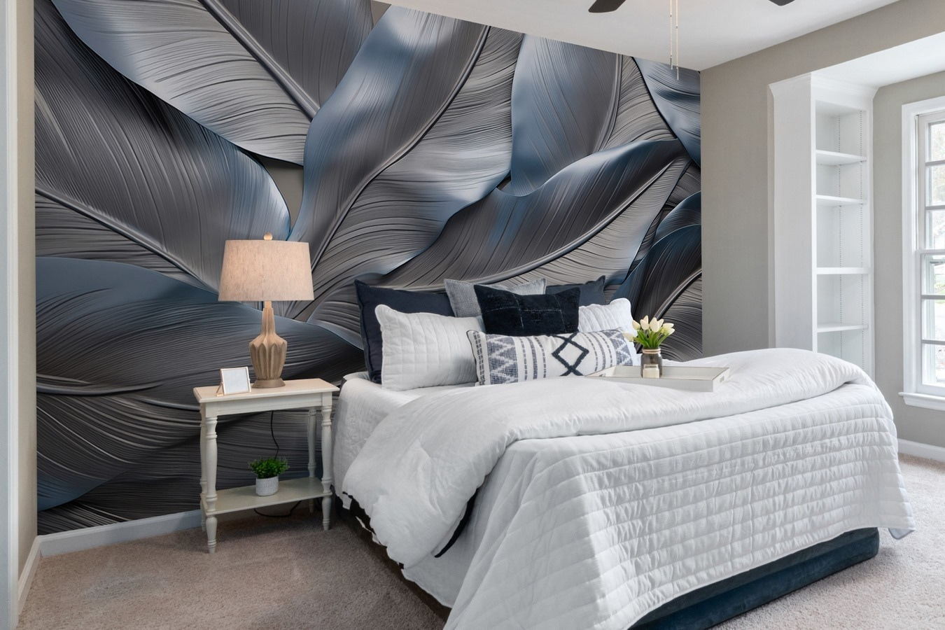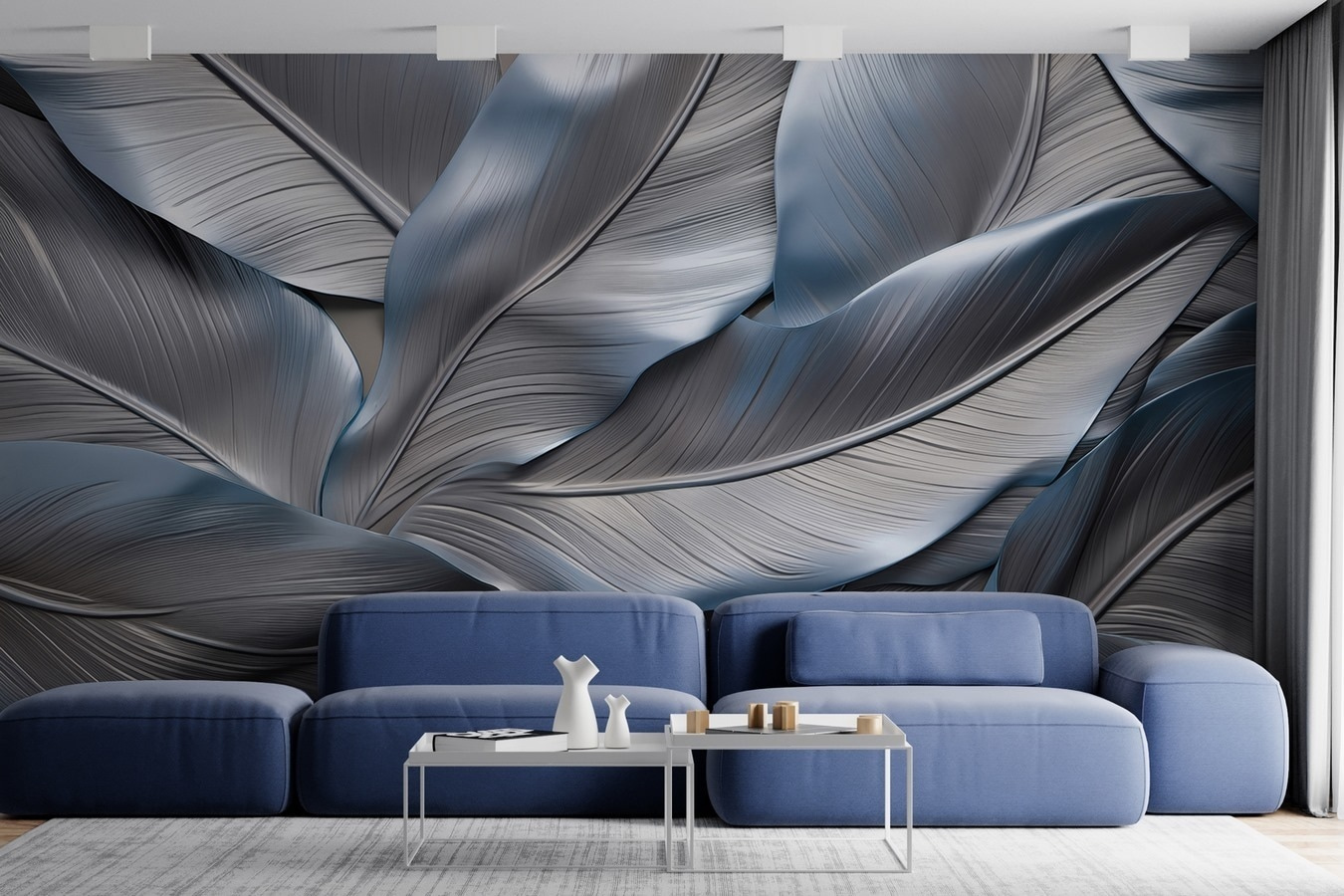Papier peint Feuilles texturées dans des tons froids Papier peint Feuilles texturées dans des tons froids