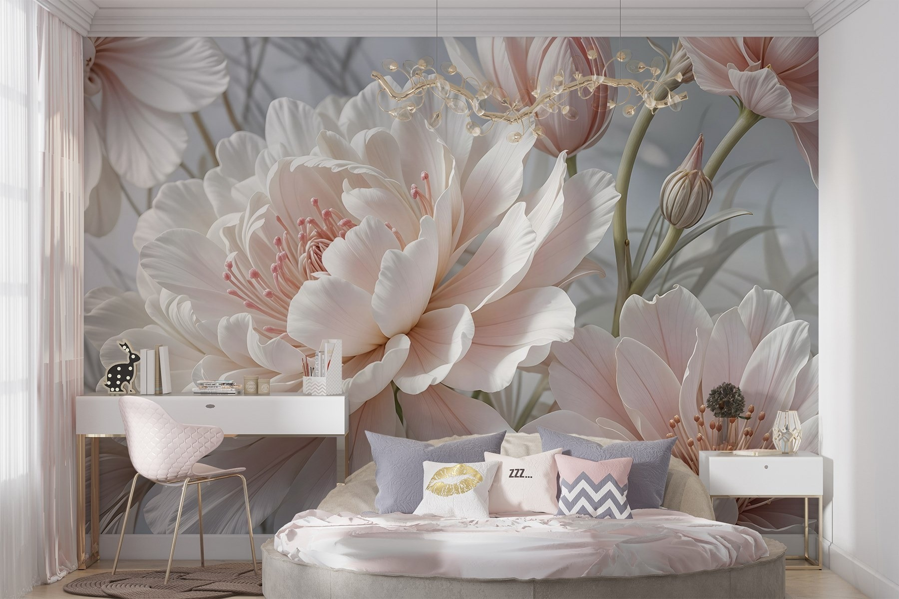 Transformez n’importe quelle pièce en une oasis de rêve avec cette peinture murale enchanteresse, “Delicate Blooms in Soft Pastel Hues” (Fleurs délicates dans de douces teintes pastel). Imaginez que vous vous réveillez avec une explosion de magnifiques pivoines et tulipes, dont les pétales doux murmurent des mots doux tandis que la lumière danse sur leurs courbes. C’est comme si vous faisiez entrer un jardin à l’intérieur, sans l’arrosoir et sans les insectes nuisibles ! Les pastels doux créent une ambiance calme qui rend chaque espace un peu plus serein. Parfaite pour un coin lecture confortable ou un salon animé, cette peinture murale invite à la détente et au charme. Il est difficile de ne pas sourire lorsqu’on est entouré d’une telle beauté ; c’est comme un câlin chaleureux pour vos murs !