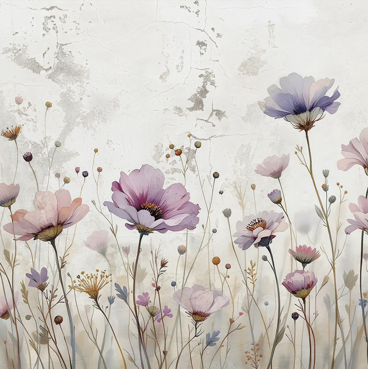 Papier peint Des fleurs délicates aux teintes douces