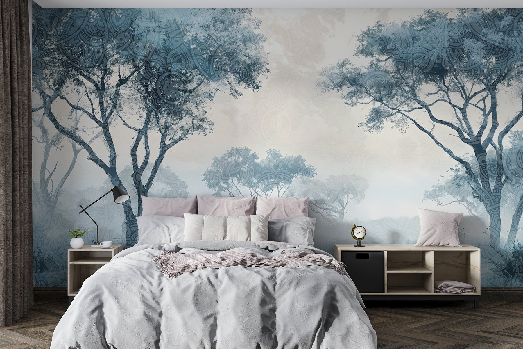 Transformez votre espace avec le charme serein de cette peinture murale “Paysage brumeux avec arbres et plantes”. Imaginez ceci : des couleurs douces et rêveuses créant une atmosphère invitante qui murmure la tranquillité. C’est comme si un léger brouillard s’installait sur votre mur. Les arbres luxuriants se dressent, invitant presque à une promenade paisible dans une forêt cachée. Imaginez que vous sirotiez un thé ou un café en ayant l’impression d’être entré dans une retraite paisible. Les détails subtils des feuilles ajoutent une touche de sophistication, parfaite pour n’importe quelle pièce. Ce n’est pas seulement un décor, c’est une expérience. Qui ne voudrait pas se réveiller dans un décor aussi apaisant ?