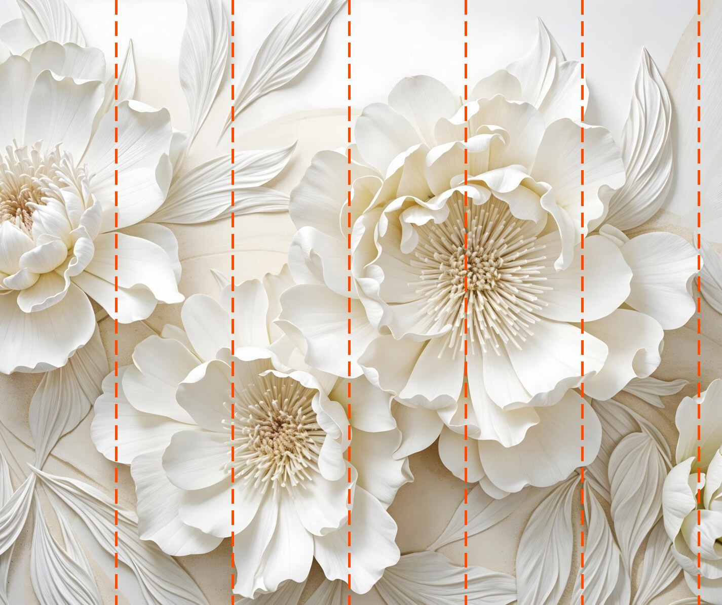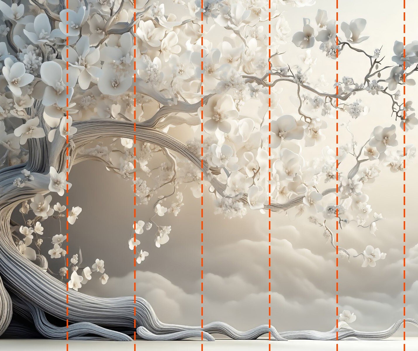 Votre papier peint sera préparé selon les dimensions que vous avez indiquées lors du processus de commande. La toile sera divisée en sections pratiques, chacune d’une largeur maximale de 50 cm.