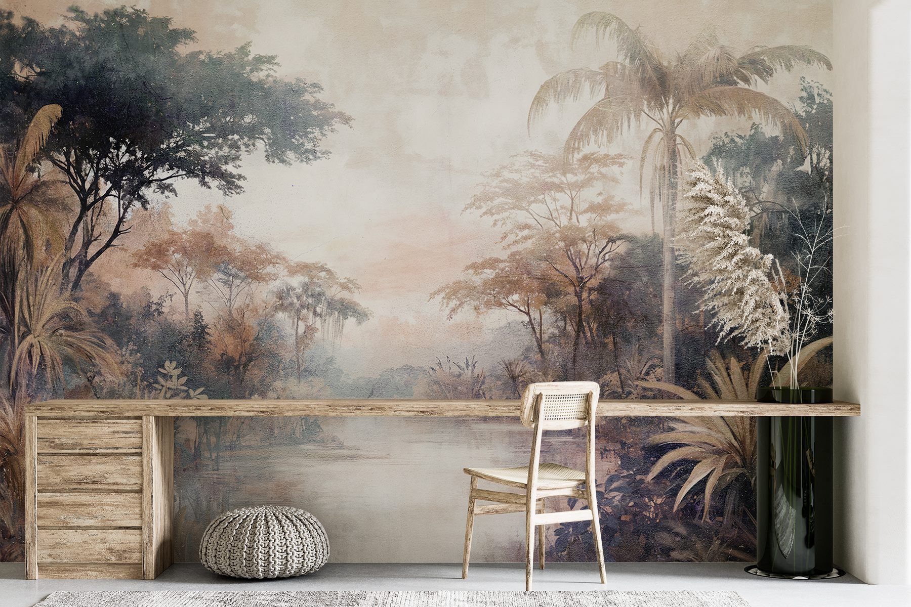 Transformez votre espace en une escapade sereine avec les “Muraux rivière avec arbres et plantes”. Imaginez que vous pénétrez dans un paysage de rêve où la verdure luxuriante rencontre une rivière tranquille – quelle ambiance ! Cette peinture murale n’est pas seulement un revêtement mural, c’est comme si vous aviez un morceau de nature chez vous. Les tons doux et terreux invitent au calme et donnent à chaque dimanche de farniente des allures de mini-vacances. Imaginez un coin lecture confortable, cette peinture murale en toile de fond, une tasse de thé bien chaude à la main. Soudain, les soucis s’estompent et la nature murmure de douces paroles. Parfait pour ceux qui ont envie d’une touche tropicale sans les coups de soleil. Ce n’est pas qu’une question de décor, c’est une question de sentiment !