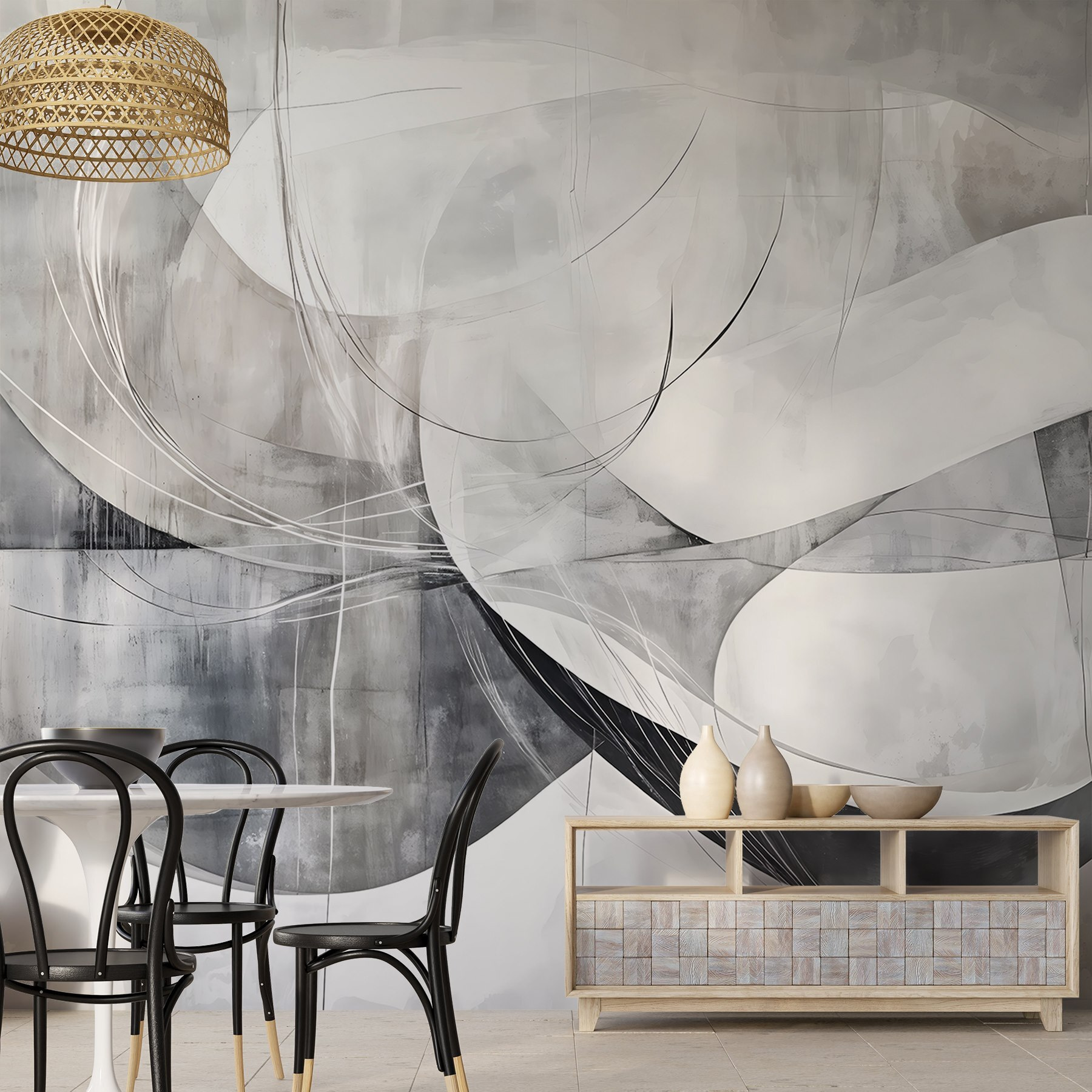 Transformez n’importe quelle pièce avec ce superbe “Art mural gris et blanc”. Il ne s’agit pas seulement d’une peinture murale ; c’est comme si vous ajoutiez un peu d’élégance calme à votre espace. Imaginez une pièce aérée où des tourbillons de gris et de blanc dansent sur les murs, donnant une impression à la fois moderne et intemporelle. Cette peinture murale complète sans effort le mobilier et la décoration, tout en donnant de la profondeur aux espaces les plus petits. Elle est parfaite pour les jours où vous souhaitez vous installer confortablement avec un livre et une tasse de café, ou lorsque des amis passent pour une soirée jeux. Qui aurait cru qu’une peinture murale pouvait susciter autant d’émotions chaleureuses ? Avec ses lignes douces et ses contrastes légers, c’est comme une poésie visuelle qui invite tout le monde à entrer. Imaginez les compliments des invités et les conversations qu’elle suscitera !