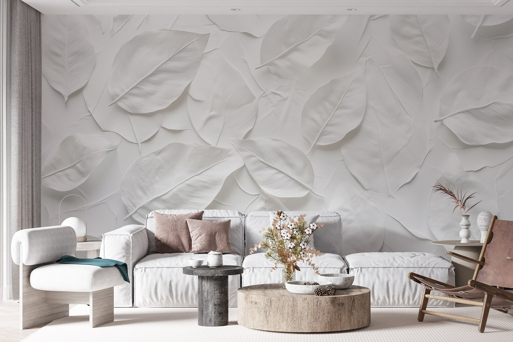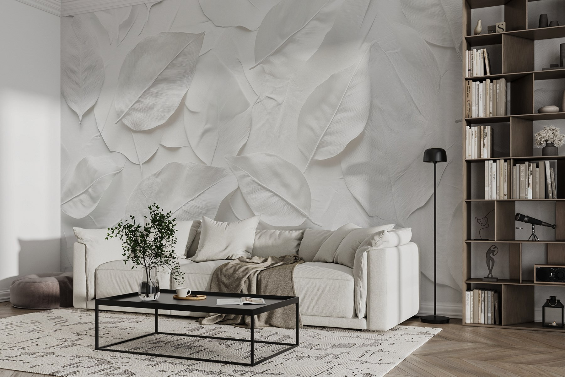 Transformez votre espace avec cette superbe peinture murale représentant une belle composition de feuilles blanches. C’est comme si vous apportiez une touche de nature à l’intérieur sans avoir à arroser les plantes. Imaginez que vous sirotiez votre café du matin sur cette toile de fond sereine, où la simplicité rencontre l’élégance. Ce design apporte une touche de fraîcheur, parfaite pour ceux qui ont envie d’une retraite calme à la maison. Qu’il s’agisse d’un salon confortable ou d’une chambre à coucher paisible, cette peinture murale murmure “Détendez-vous”. Qui ne voudrait pas se sentir un peu plus zen chaque jour ? Il est discret, mais remarquablement enchanteur, à l’image de la nature elle-même.