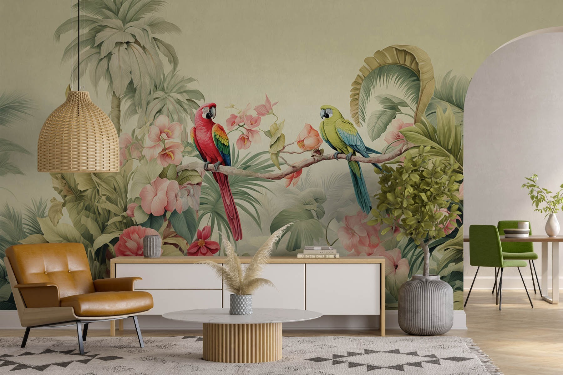 Transformez votre espace avec cette peinture murale vibrante représentant un charmant couple de perroquets gracieusement perchés sur une branche. Ces amis à plumes apportent une touche de paradis tropical dans votre maison. Les fleurs et les feuilles luxuriantes créent une atmosphère sereine, ce qui est parfait pour un coin lecture confortable ou un salon animé. Imaginez que vous sirotiez votre café du matin entouré de cette explosion de couleurs – c’est comme si vous étiez en vacances perpétuelles ! De plus, les vibrations ludiques des perroquets pourraient même inspirer quelques conversations insolentes. Adoptez la beauté de la nature et laissez vos murs raconter une histoire !