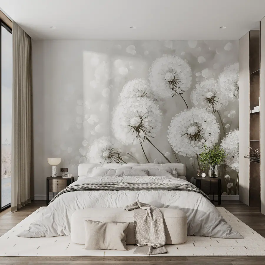 Transformez n’importe quel espace en une évasion sereine avec cette peinture murale enchanteresse de pissenlits en pleine floraison. Les blancs doux et rêveurs et les coups de pinceau délicats créent une atmosphère apaisante, parfaite pour les salons ou les coins lecture confortables. Imaginez : un après-midi de farniente, à siroter un thé en contemplant ces fleurs fantaisistes – c’est comme une bouffée d’air frais pour les murs. De plus, elles nous rappellent les jours d’enfance passés à faire des vœux sur des boules de pissenlit. Ajoutez une touche de magie de la nature à votre maison et laissez votre espace respirer un peu plus facilement – après tout, qui ne voudrait pas d’un champ de souhaits à la maison ?