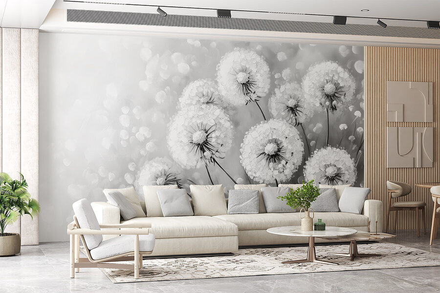 Transformez votre espace avec la beauté enchanteresse de cette peinture murale en noir et blanc représentant un groupe de pissenlits. C’est comme si vous apportiez une touche de prairie magique dans votre salon. Imaginez-vous en train de siroter un café tout en contemplant ces délicates fleurs, chacune débordant de charme. Les tons doux et monochromes créent une ambiance calme, parfaite pour rêvasser ou planifier votre prochaine aventure. Vous vous retrouverez perdu dans vos pensées, vous souvenant de vos courses à travers les champs ou de vos vœux de pissenlit. Une façon simple mais frappante d’ajouter une touche unique à n’importe quel mur !