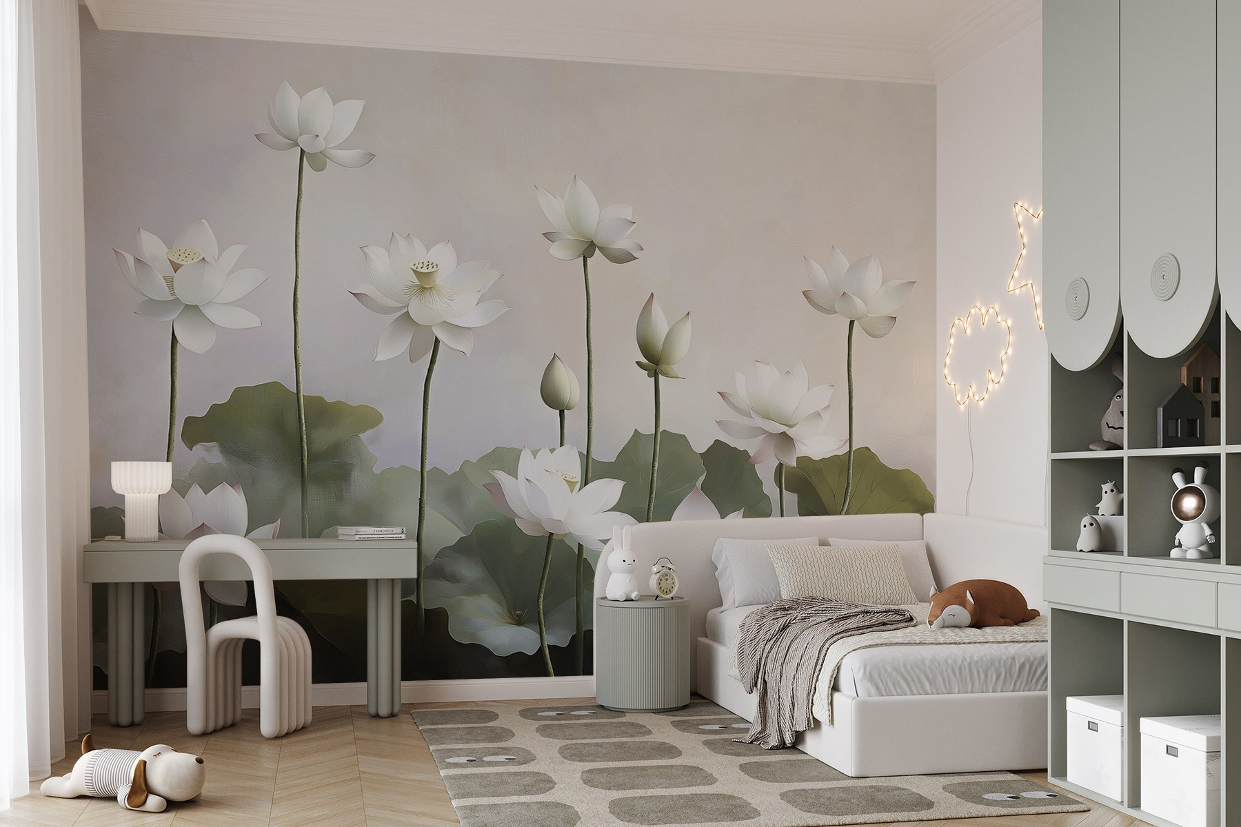 Entrez dans un monde de calme avec la peinture murale “Groupe de fleurs blanches”. Imaginez votre espace, soudainement plus lumineux et plus accueillant, lorsque ces élégantes fleurs se balancent sur le mur comme si elles dansaient sous l’effet d’une douce brise. Chaque pétale murmure la paix, et le simple fait de la regarder peut faire oublier l’agitation de la vie quotidienne, comme si l’on trouvait un coin paisible dans un jardin animé. Il est parfait pour n’importe quelle pièce, transformant les murs ternes en une échappée sereine. Vos amis pourraient même vous faire remarquer qu’il donne à la pièce l’impression d’être un lieu de retraite tranquille. Qui ne voudrait pas d’une tranche de nature à l’intérieur ?