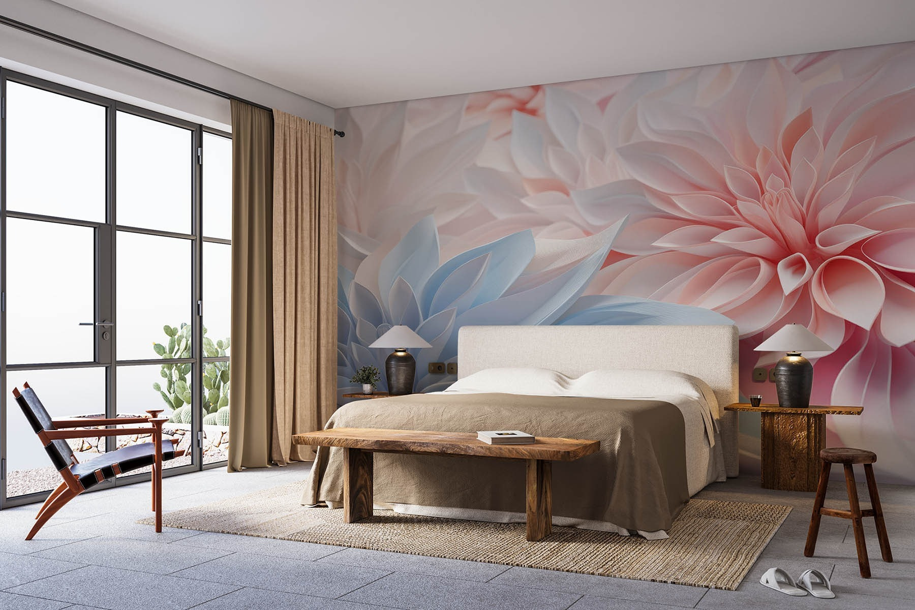 Transformez votre espace avec cette ravissante peinture murale représentant une étonnante composition de fleurs en papier pastel. Imaginez la bouffée d’air frais qu’il apporte – chaque fleur en rose et bleu doux ressemble à une douce étreinte printanière. Parfait pour un coin douillet ou un salon animé, c’est comme si vous invitiez un jardin à l’intérieur sans avoir à vous soucier de l’arroser.