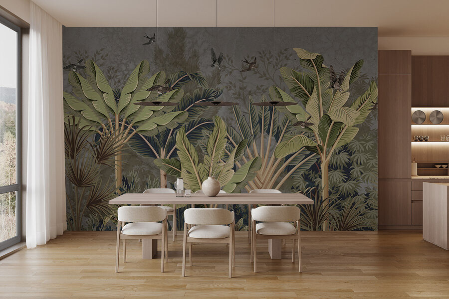 Transformez n’importe quelle pièce en une évasion sereine grâce à cette superbe peinture murale de forêt tropicale. Imaginez que vous pénétrez dans un paradis luxuriant, où les feuilles vibrantes se balancent doucement et où les oiseaux volent, apportant des chuchotements de la nature. Cette peinture murale ne se contente pas de décorer un mur, elle raconte une histoire et vous invite à rêver d’aventures exotiques. Parfait pour un coin lecture confortable ou un espace de vie animé, il apporte de la chaleur et une touche d’extérieur. De plus, c’est un excellent moyen d’engager la conversation – attendez que vos invités vous demandent si vous êtes secrètement devenu un explorateur de la jungle ! Embrassez la nature sans les moustiques.