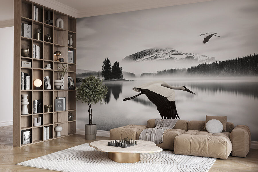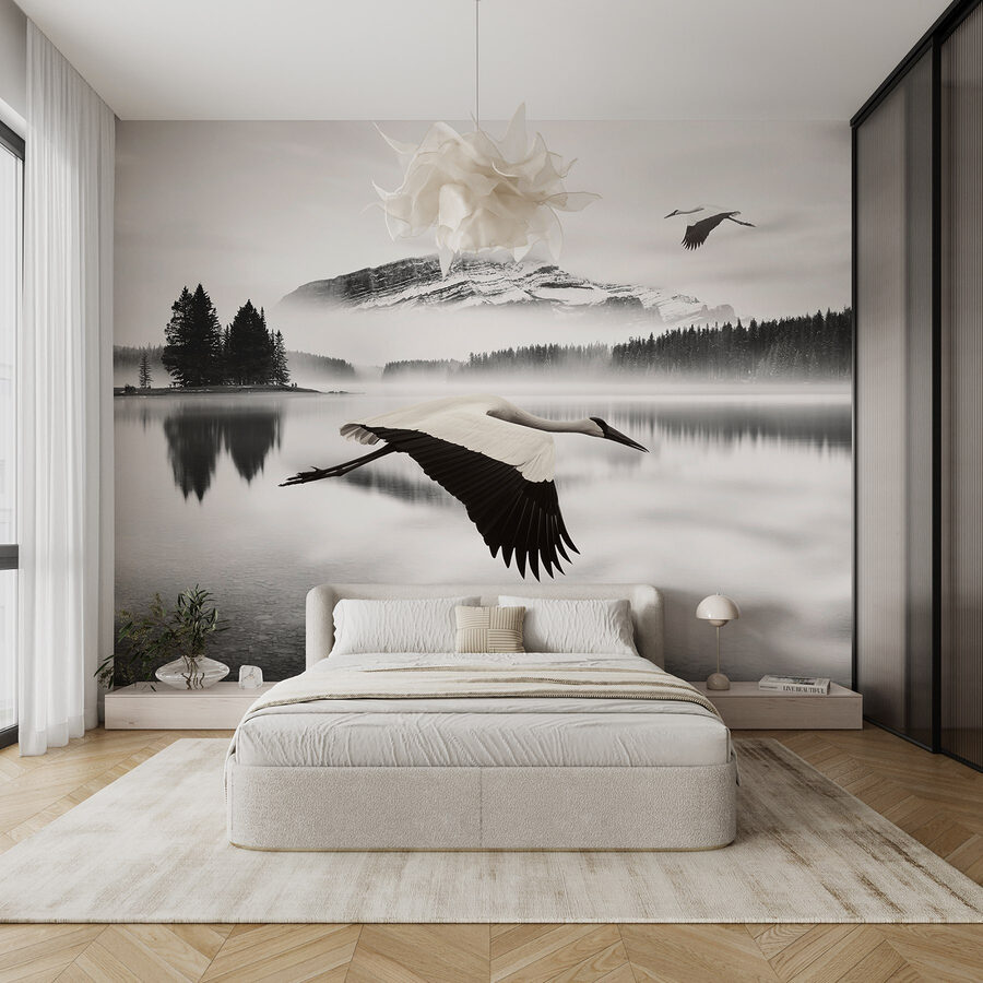 Imaginez-vous en train de siroter un thé près du mur, avec l’impression d’être entré dans une échappée sereine. Les teintes douces de l’aquarelle créent une atmosphère de rêve, ce qui permet de perdre la notion du temps tout en se perdant dans sa beauté. Avec cette peinture murale, chaque regard est une mini-vacance ! Qui aurait cru que les oiseaux volants pouvaient apporter une telle paix ?