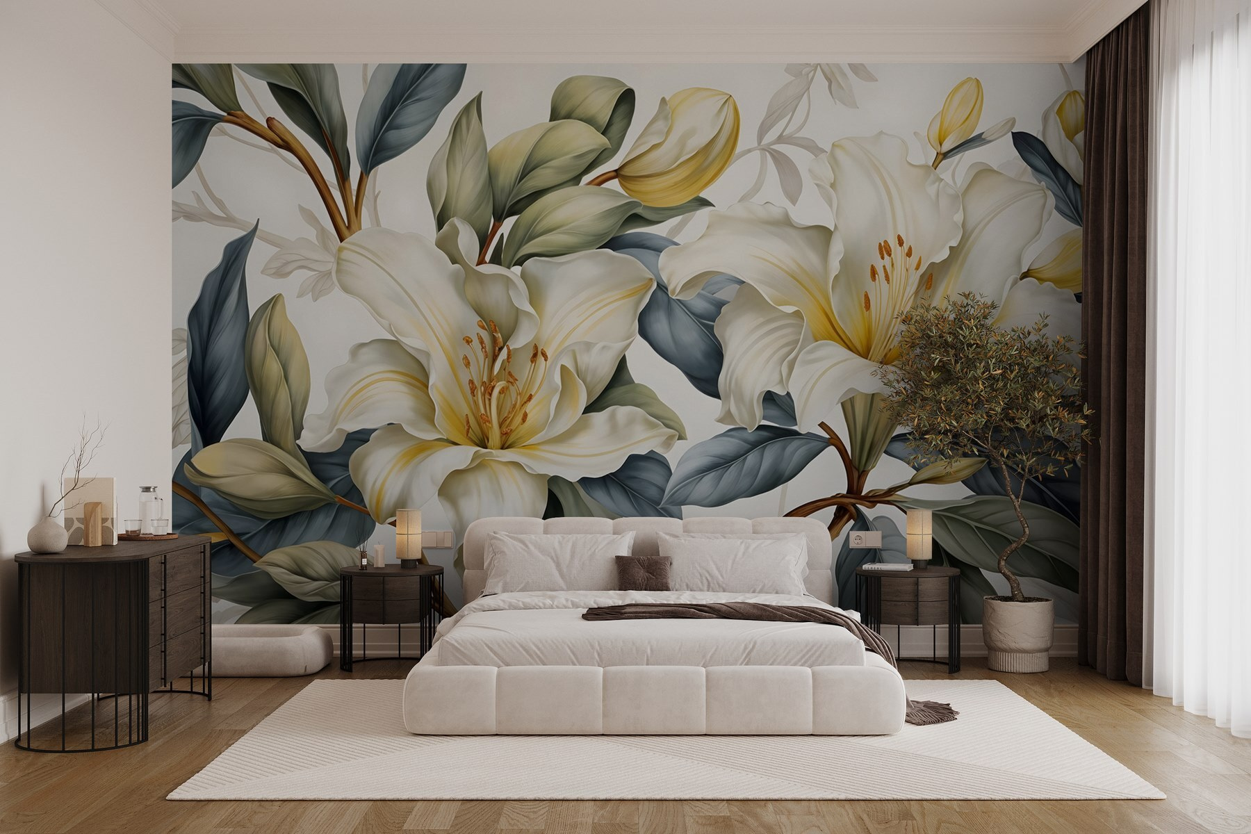 Papier peint Fleurs élégantes dans une végétation luxuriante Papier peint Fleurs élégantes dans une végétation luxuriante