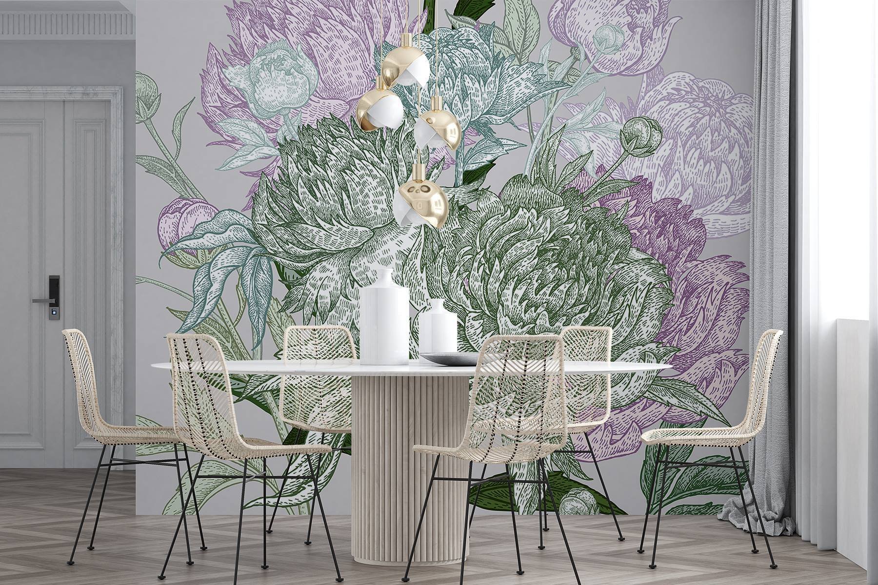 Transformez votre espace avec “Lush Blooms in Delicate Hues” – une peinture murale qui ressemble à une douce brise transportant le parfum du printemps. Imaginez que vous vous réveillez avec la douce couleur des pivoines et les verts apaisants, donnant à vos murs une touche picturale. C’est comme avoir un jardin à l’intérieur, l’arrosoir en moins ! Ce motif invite les bonnes vibrations ensoleillées dans n’importe quelle pièce, encourageant les rêveries et les discussions douillettes autour d’un café. Il est parfait pour un coin lecture ou un mur vide qui ne demande qu’à être animé. Lorsque vos amis vous rendront visite, ils se perdront dans les détails et vous demanderont probablement où se trouvent les fleurs – c’est vraiment magique !