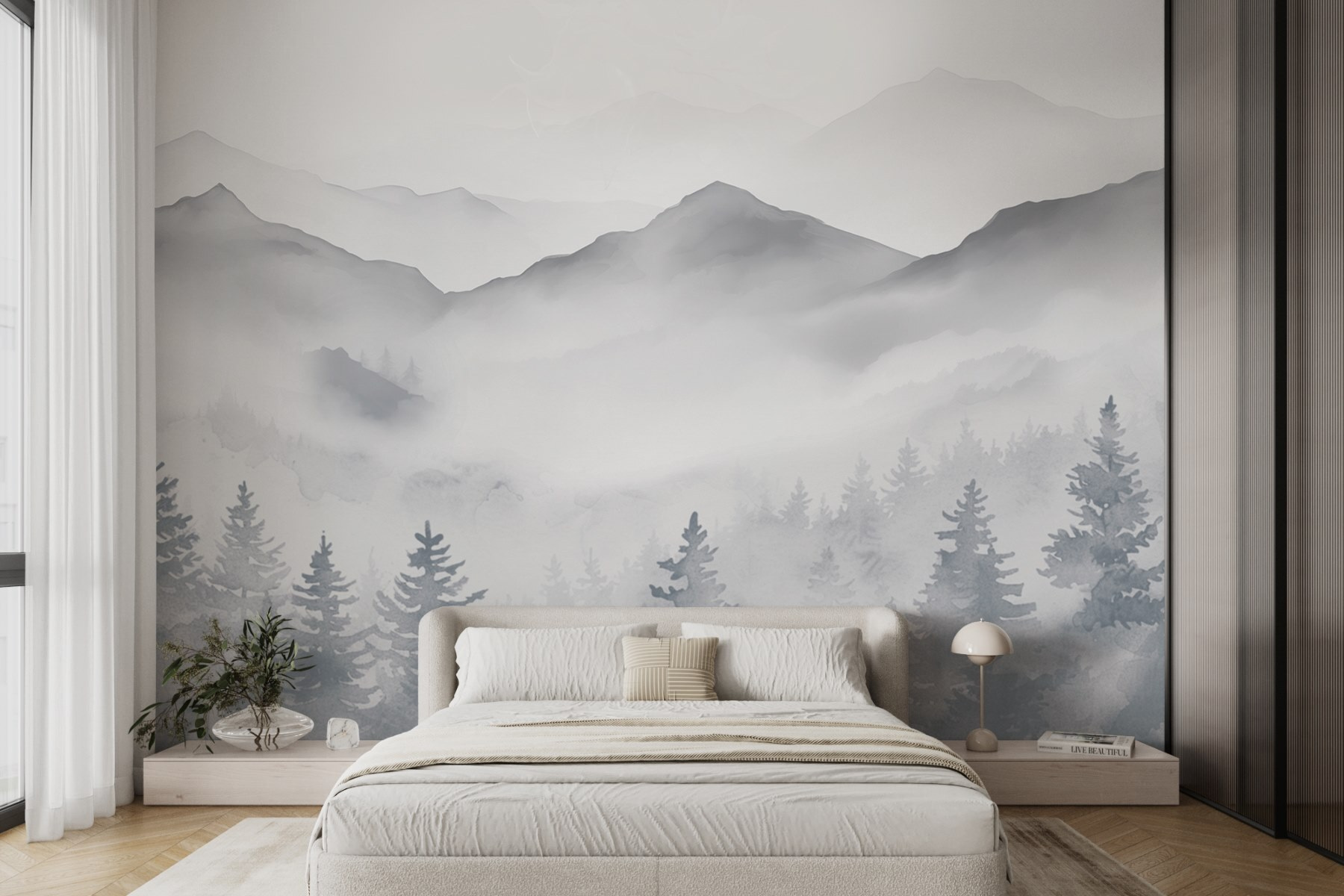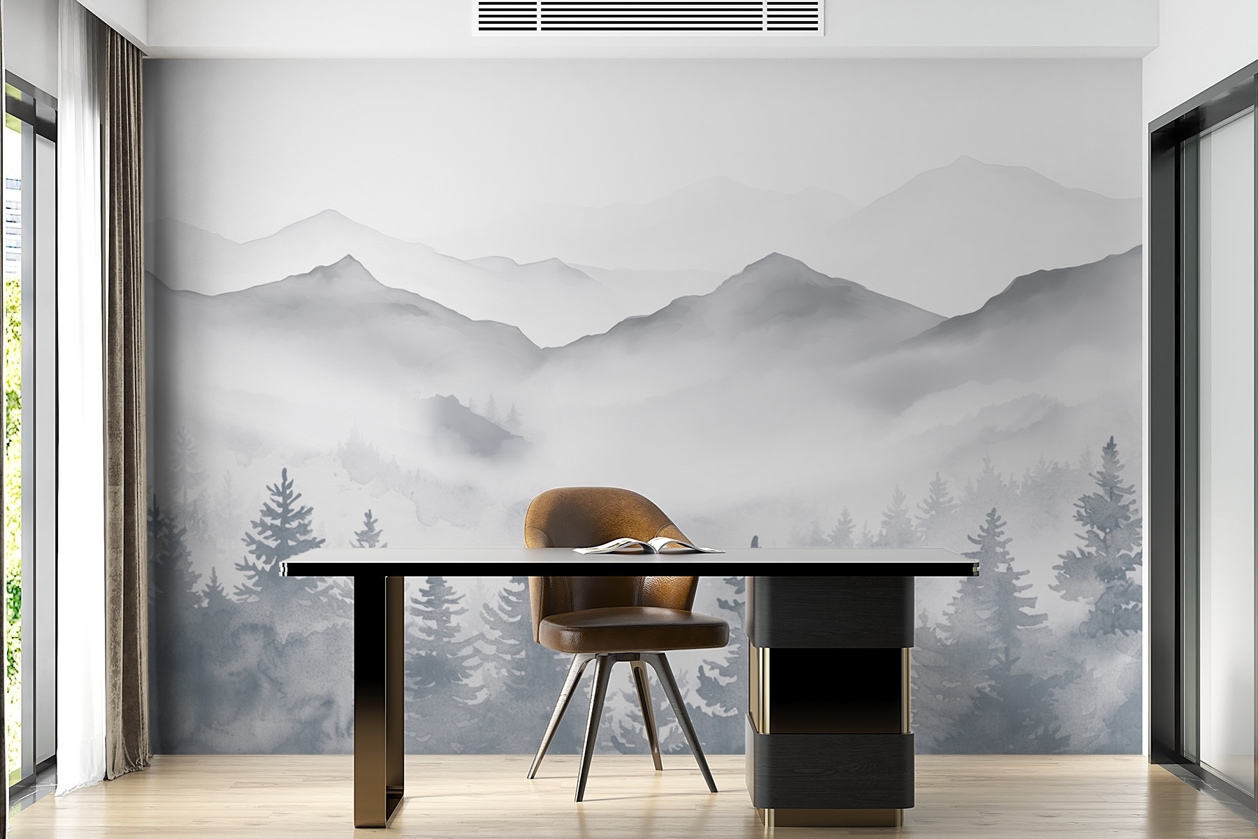 Transformez n’importe quel espace en une escapade sereine avec cette superbe peinture murale de montagnes et d’arbres. C’est comme si vous apportiez un morceau de nature à l’intérieur – parfait pour tous ceux qui aiment une belle vue sans les inconvénients d’une randonnée. Imaginez que vous sirotiez un café en contemplant des sommets brumeux et des arbres imposants, vous rappelant ces inoubliables retraites à la montagne. Le style aquarelle doux ajoute une élégance délicate, adoucissant l’ambiance de n’importe quelle pièce. Il est confortable et inspirant, comme une étreinte chaleureuse de la nature. Ce n’est pas seulement un décor, c’est un moment de paix au quotidien. Qui n’en a pas besoin ?