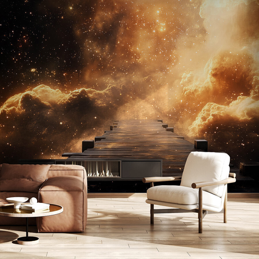 Transformez votre espace avec la « fresque murale Pont en bois menant aux nuages ». Imaginez-vous en train de marcher sur un pont en bois patiné qui semble s’étendre vers une galaxie onirique. Il invite à l’aventure, comme si vous vous demandiez « où vais-je atterrir ? ». Les teintes vives mélangent des tons chauds et froids, créant une toile de fond magique qui éveille l’imagination. Imaginez ces matins tranquilles où vous sirotez votre café en contemplant un ciel parsemé d’étoiles et de nuages : le bonheur à l’état pur. C’est parfait pour stimuler votre créativité ou simplement pour rêvasser. Cette fresque murale dégage une élégance naturelle et apporte une touche de fantaisie à votre intérieur. Qui ne voudrait pas s’évader dans les nuages de temps en temps ?