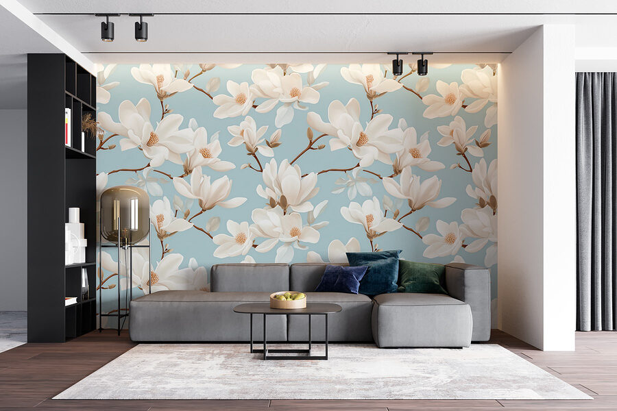 Transformez votre espace avec le superbe « Motif mural de fleurs blanches ». Imaginez-vous entrer dans une pièce où de gracieuses magnolias fleurissent sur un fond bleu ciel apaisant. C’est comme avoir le printemps chez vous toute l’année ! Les pétales délicats et les couleurs douces créent une atmosphère apaisante, parfaite pour se détendre après une longue journée ou se blottir avec un bon livre. Vos amis entreront et penseront que vous vous êtes réfugié dans un jardin luxuriant ! De plus, cela vous rappellera que la beauté peut se trouver juste à côté, sur un mur. Qui aurait cru que la décoration intérieure pouvait être aussi rafraîchissante et joyeuse ?