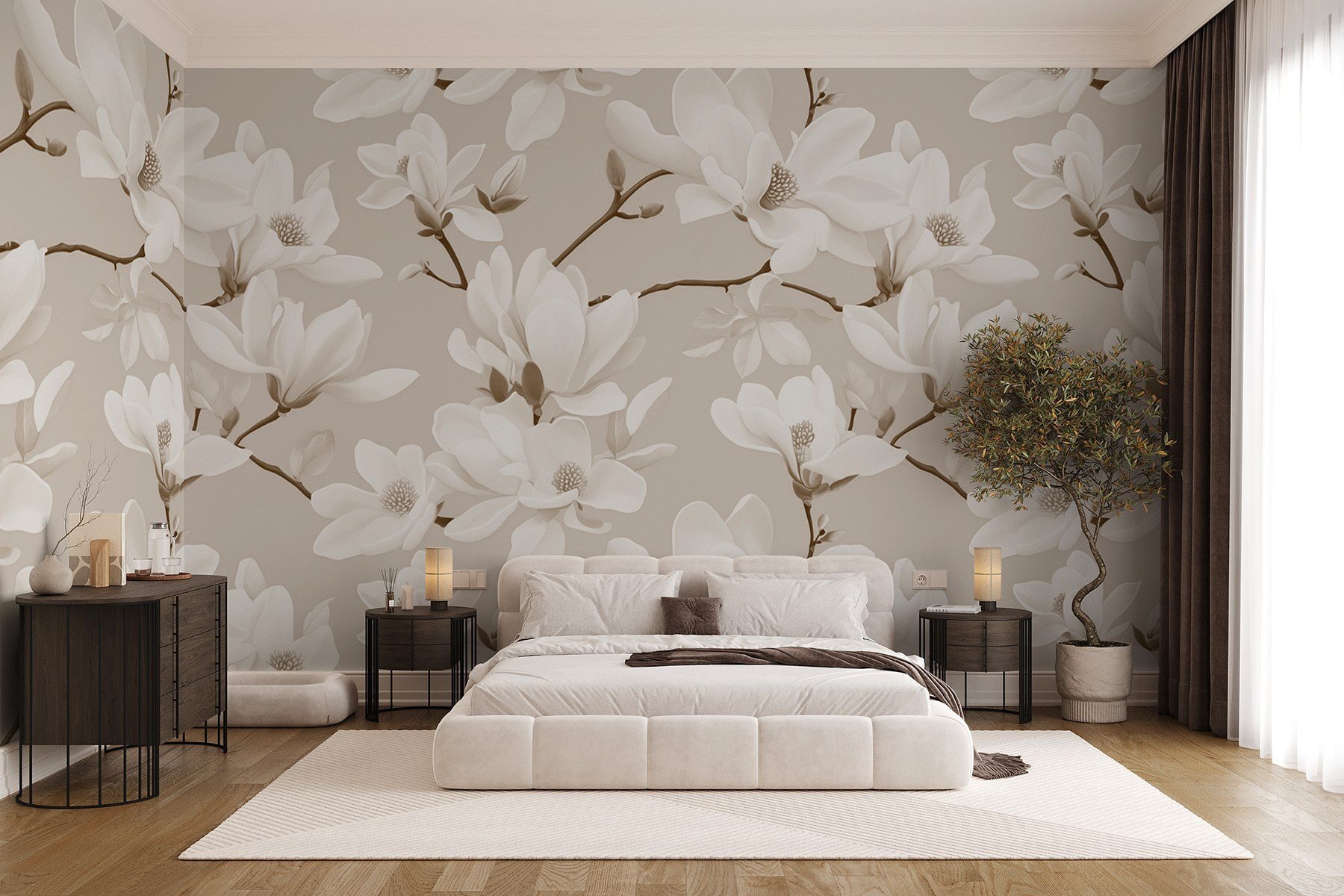 Transformez votre espace en un havre de paix avec le « papier peint mural Motif de fleurs blanches ». Imaginez-vous entrer dans un jardin serein chaque fois que vous pénétrez dans la pièce, avec une élégance naturelle qui enveloppe vos murs. Ces délicates fleurs blanches dansent sur un fond doux, créant une atmosphère apaisante qui procure une sensation de fraîcheur et de calme, comme une douce brise printanière. Idéal pour un salon confortable ou une chambre à coucher paisible, ce papier peint mural remonte instantanément le moral et invite à la chaleur. Vos invités s’arrêteront pour l’admirer, et vous demanderont peut-être même où ils peuvent se procurer leur propre coin de paradis floral. Un mélange parfait entre nature et art : qui aurait cru que la décoration murale pouvait être aussi vivante ?