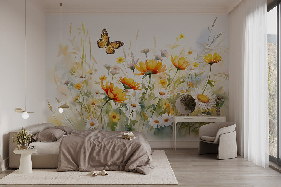 Transformez votre espace en un jardin vibrant avec cette superbe peinture murale d’un papillon voltigeant au-dessus d’un champ de fleurs. Il apporte une touche ludique de nature, donnant à n’importe quelle pièce une sensation de fraîcheur et d’accueil. Imaginez-vous en train de siroter un café tout en profitant de cette scène joyeuse – c’est comme si vous aviez un peu de printemps sur votre mur, sans le mal de tête dû au pollen. Les éclats de couleur peuvent vous mettre de bonne humeur et inspirer votre entourage. C’est la toile de fond idéale pour un coin lecture confortable ou une salle de jeux animée. Qui ne voudrait pas plonger dans cette fantaisie florale ?