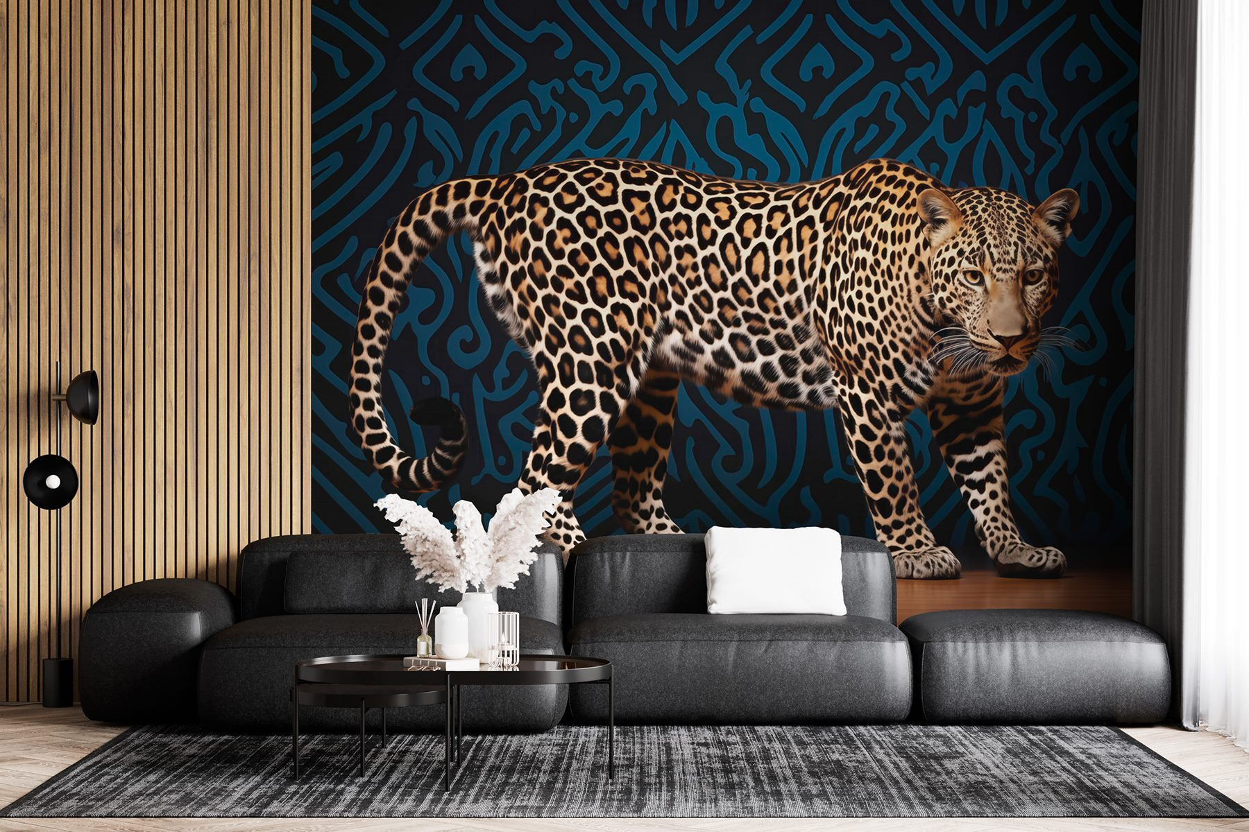 Imaginez que vous entrez dans la pièce et que vous vous sentez instantanément stimulé – un frisson ludique lorsque le léopard semble prêt à sauter du mur. Les amis s’arrêteront et remarqueront, et les conversations sur la décoration s’enflammeront comme un feu de camp. Imaginez que vous vous asseyez sur le canapé, un verre à la main, entouré de cette créature majestueuse et d’une toile de fond qui murmure des histoires d’aventure. Qui ne se sentirait pas inspiré ? Plus qu’une simple peinture murale, c’est une expérience qui ne demande qu’à être vécue.