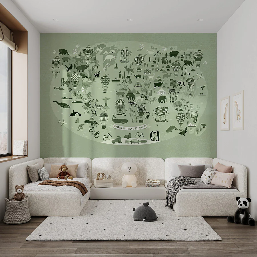 Transform any room into a mini-adventure with the “Wall Murals Map of the World.” This playful mural is packed with whimsical creatures and iconic landmarks, making it feel like your very own treasure map filled with discoveries. Imagine plopping down in your favorite spot, coffee in hand, and letting your eyes wander across the colorful illustrations—from soaring hot air balloons to adorable animals that seem ready to leap off the wall. It’s like having a conversation starter that also inspires daydreams of faraway places. Perfect for a cozy reading nook or a fun playroom, it adds a splash of creativity and curiosity, inviting everyone to explore the world—right from home! A mural like this makes staying in feel like traveling the globe, minus the packing.