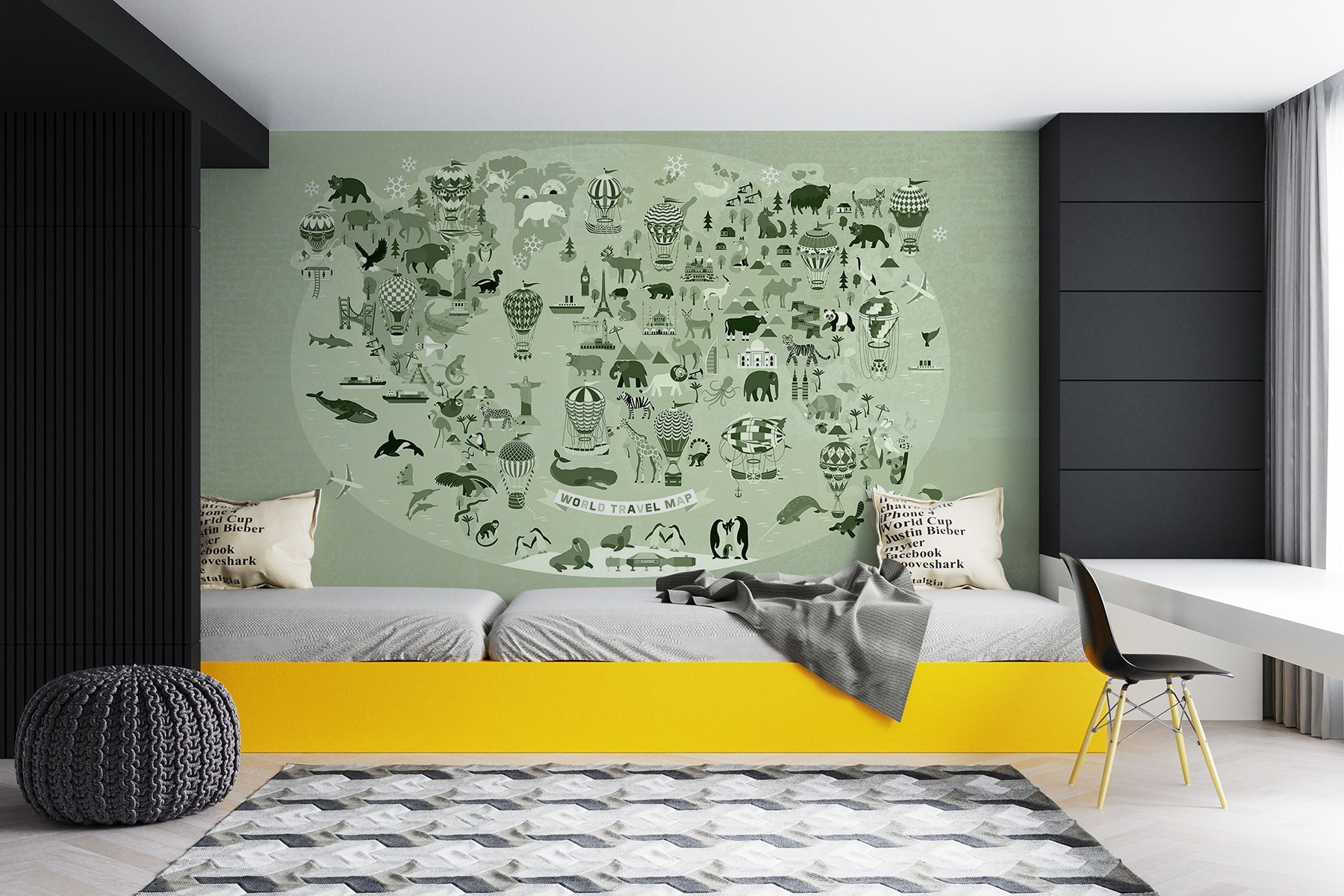 Transformez n’importe quelle pièce en une mini-aventure avec la « carte murale du monde ». Cette fresque ludique regorge de créatures fantaisistes et de monuments emblématiques, vous donnant l’impression d’avoir votre propre carte au trésor remplie de découvertes. Imaginez-vous confortablement installé dans votre coin préféré, une tasse de café à la main, laissant votre regard vagabonder sur les illustrations colorées, des montgolfières virevoltant dans les airs aux adorables animaux qui semblent prêts à bondir hors du mur. C’est comme avoir un sujet de conversation qui inspire également des rêveries sur des lieux lointains. Parfaite pour un coin lecture confortable ou une salle de jeux amusante, elle ajoute une touche de créativité et de curiosité, invitant tout le monde à explorer le monde, depuis chez soi ! Une fresque murale comme celle-ci donne l’impression de voyager à travers le monde sans avoir à faire ses valises.