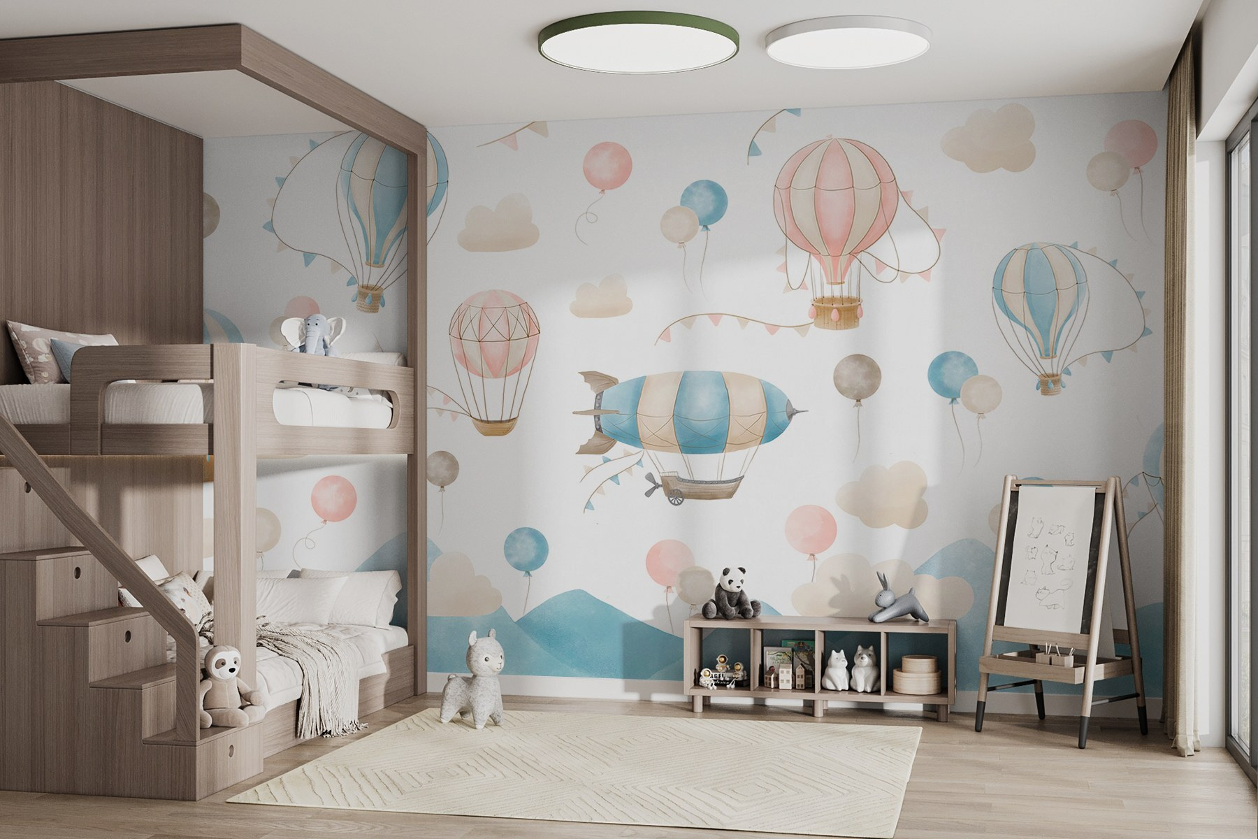 Imaginez-vous dans un monde féérique où des montgolfières flottent doucement au-dessus de nuages cotonneux… Ça semble agréable, n’est-ce pas ? Cette fresque murale « Groupe de montgolfières et de drapeaux » apporte cette magie dans votre intérieur. Les touches aquarellées sont naturellement charmantes et évoquent des histoires d’aventure et de jours insouciants. Imaginez une chambre d’enfant qui ressemble à un pays des merveilles dans les airs ou un salon qui suscite la joie avec une touche unique. Ces couleurs pastel ? Une touche adorable et apaisante ! C’est comme une douce étreinte chaque fois que vous la regardez. Et puis, qui n’a pas besoin d’un peu plus de fantaisie dans sa vie ? Parfaite pour inspirer les rêveries et les conversations, cette fresque murale embellit véritablement n’importe quel mur. Profitez du voyage, une montgolfière à la fois !