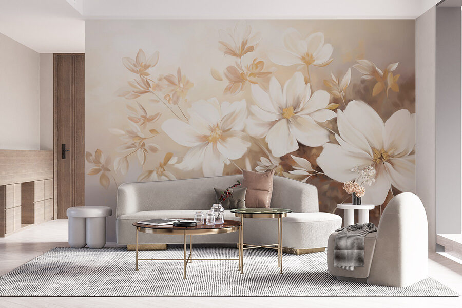 Transformez votre espace en un jardin serein grâce à cette ravissante fresque murale ornée de délicates fleurs blanches. Imaginez-vous entrer dans votre pièce et être immédiatement envahi par une vague de calme, comme une douce brise printanière transportant le parfum des pétales épanouis. Cette œuvre apporte chaleur et élégance, s’harmonisant sans effort avec n’importe quel décor. Les teintes douces et le style artistique créent une atmosphère onirique ; c’est comme une étreinte réconfortante pour vos murs. Parfaite pour les après-midis tranquilles, elle inspirera vos rêveries et rendra n’importe quel espace un peu plus magique. De plus, qui ne voudrait pas d’une oasis florale instantanée ?