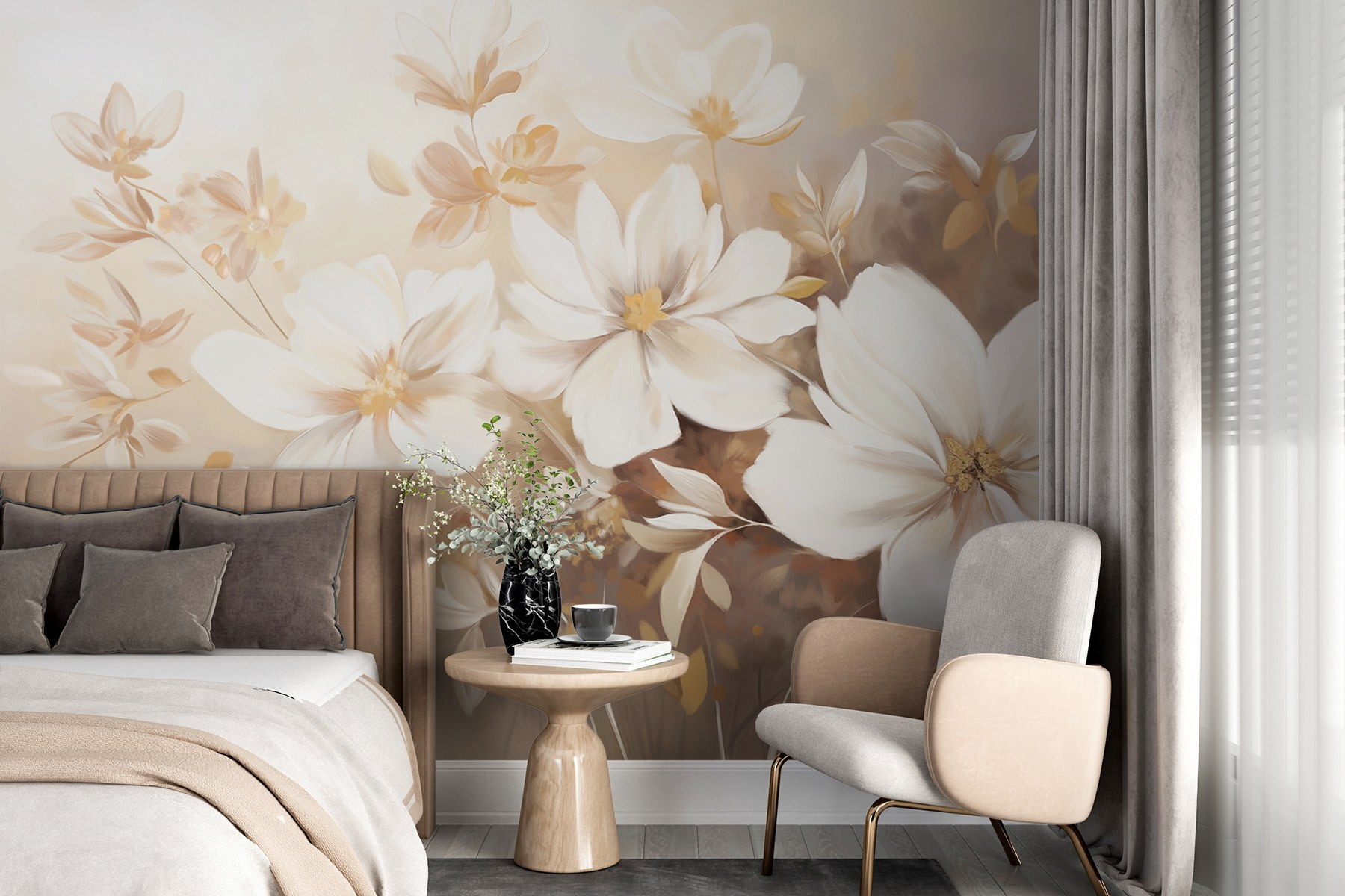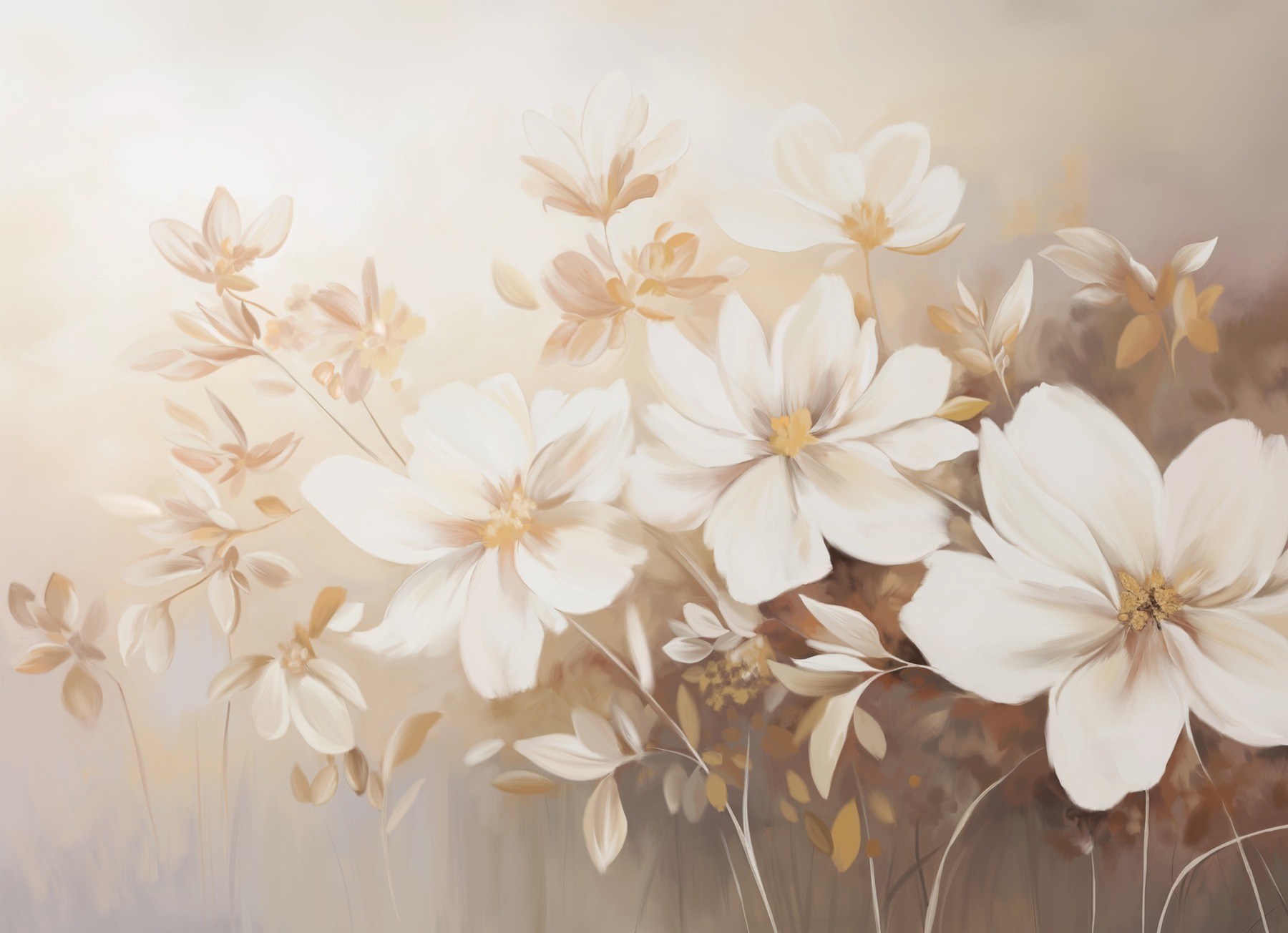 Transformez votre espace en un jardin serein grâce à cette ravissante fresque murale ornée de délicates fleurs blanches. Imaginez-vous entrer dans votre pièce et être immédiatement envahi par une vague de calme, comme une douce brise printanière transportant le parfum des pétales épanouis. Cette œuvre apporte chaleur et élégance, s’harmonisant sans effort avec n’importe quel décor. Les teintes douces et le style artistique créent une atmosphère onirique ; c’est comme une étreinte réconfortante pour vos murs. Parfaite pour les après-midis tranquilles, elle inspirera vos rêveries et rendra n’importe quel espace un peu plus magique. De plus, qui ne voudrait pas d’une oasis florale instantanée ?