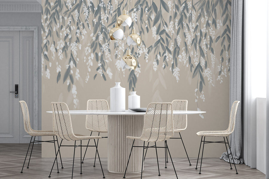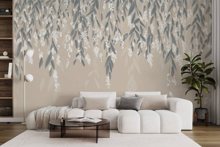 Papier peint Dessin de feuilles et de fleurs