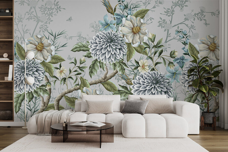 Transformez votre espace avec cette superbe fresque murale au motif floral élégant dans des tons doux et discrets. Imaginez-vous dans un jardin serein où les couleurs douces inspirent calme et sophistication. Ces fleurs complexes ressortent sur le fond subtil, créant une ambiance à la fois chaleureuse et chic. C’est comme avoir un coin de nature dans votre salon ! Parfaite pour un coin lecture ou comme toile de fond pour des photos de famille, cette fresque murale ajoute une touche de fantaisie sans être trop voyante. Qui ne voudrait pas rentrer chez soi pour voir ça ?