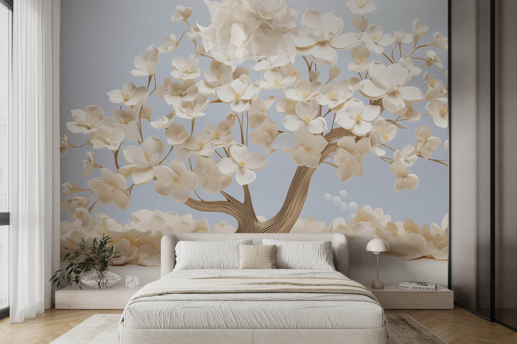 Transformez votre espace avec l’envoûtante « Fresque murale Arbre aux fleurs blanches ». Imaginez-vous entrer dans une pièce et être accueilli par un arbre serein et fleuri qui respire la tranquillité. Les fleurs douces et délicates créent une ambiance paisible, parfaite pour rêvasser ou simplement échapper au chaos quotidien. C’est comme avoir un coin de jardin japonais chez soi : qui ne voudrait pas siroter un thé devant une telle beauté ?