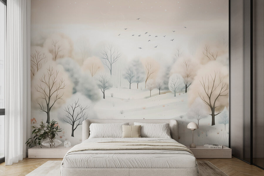 Transformez n’importe quelle pièce en un confortable paradis hivernal grâce à cette superbe fresque murale, « Paysage enneigé avec arbres et oiseaux ». Imaginez une douce chute de neige, avec des arbres givrés se balançant doucement tandis que des oiseaux planent au-dessus de vos têtes. C’est comme si vous apportiez le calme de la nature dans votre espace de vie, sans l’air glacial, juste la sérénité à l’état pur. Les tons neutres créent une atmosphère paisible qui peut égayer même les jours les plus sombres. Que ce soit dans un coin lecture tranquille ou dans une salle familiale animée, cette fresque murale crée l’ambiance. Imaginez-vous en train de siroter un chocolat chaud, enveloppé dans une couverture douillette, en contemplant cette scène sereine : c’est un peu de la magie de l’hiver, sans le froid !