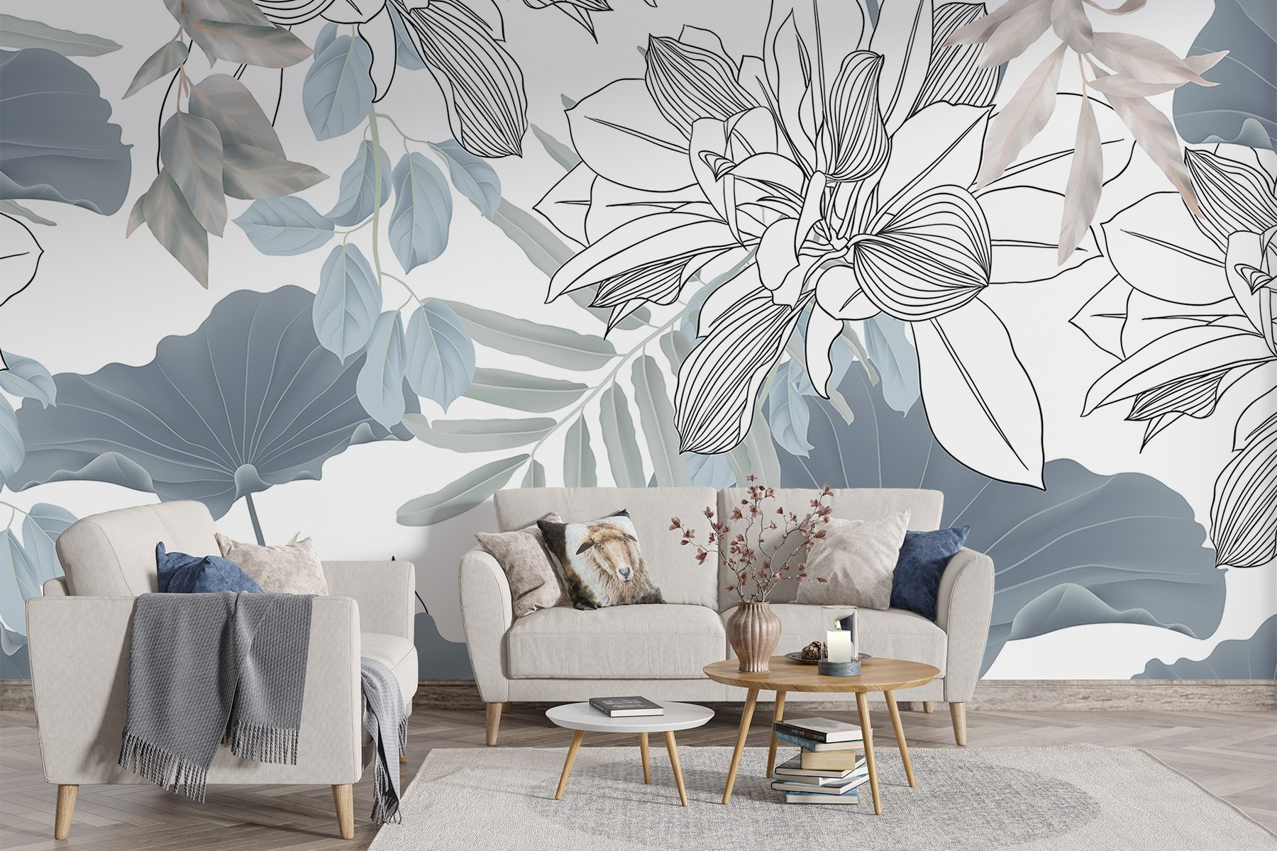 Transformez votre espace avec cette superbe peinture murale présentant un motif floral orné de feuilles et de fleurs délicates. Imaginez que vous entrez dans une pièce où la nature semble vous étreindre avec des vibrations fraîches et des couleurs douces. Ces bleus doux et ces verts subtils ? Ils sont parfaits pour créer une retraite calme, qu’il s’agisse d’un coin lecture confortable ou d’une salle à manger animée. Imaginez que vous recevez des amis, que les conversations sont animées et que chaque coin de la pièce est accueillant. Cette peinture murale n’est pas seulement un décor – elle est comme une bouffée d’air frais, apportant vie et chaleur. Qui ne sourirait pas devant de telles fleurs ? Parfait pour tous ceux qui cherchent à ajouter un peu de beauté et de charme !
