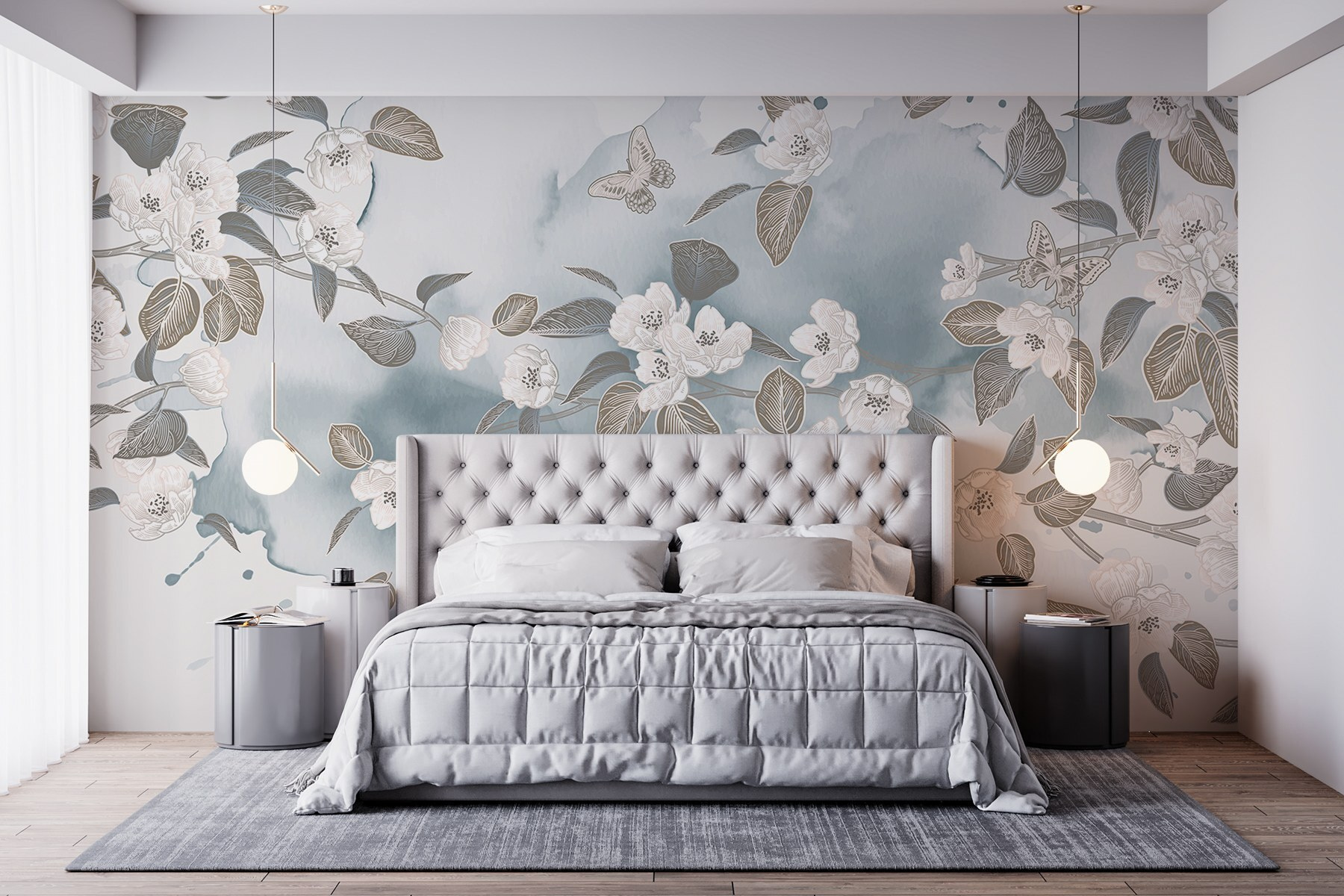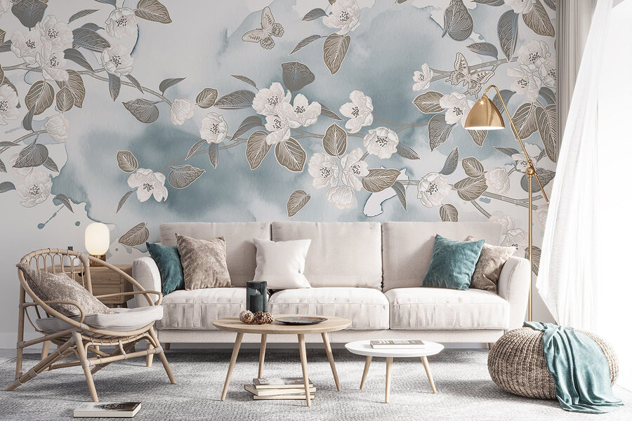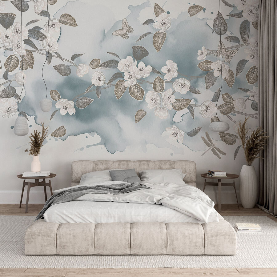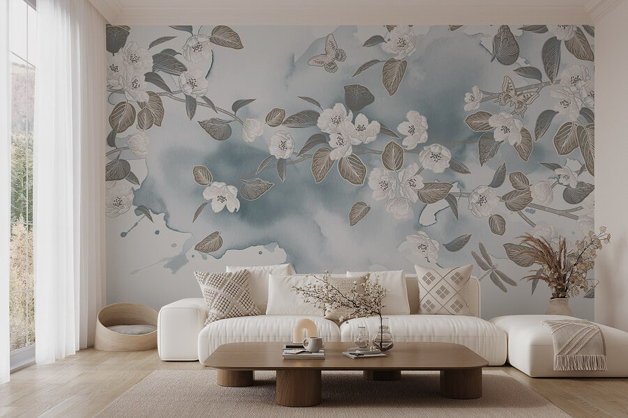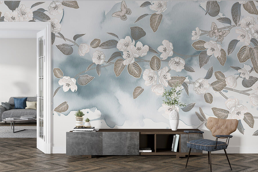 Transformez n’importe quelle pièce avec cette superbe peinture murale représentant des fleurs et des feuilles blanches dansant sur un fond bleu serein. Imaginez que vous vous réveillez avec cette douce beauté – c’est comme si le printemps s’était installé sur vos murs. L’effet aquarelle ajoute une note douce et rêveuse qui peut égayer même les journées les plus sombres. Que ce soit dans un salon douillet ou une chambre calme, cette peinture murale invite à la paix et à la tranquillité. Parfait pour ceux qui adorent la nature mais oublient parfois d’arroser leurs plantes. Il s’agit d’une petite évasion chez soi, qui rend chaque moment un peu plus spécial. Une touche parfaite, n’est-ce pas ?