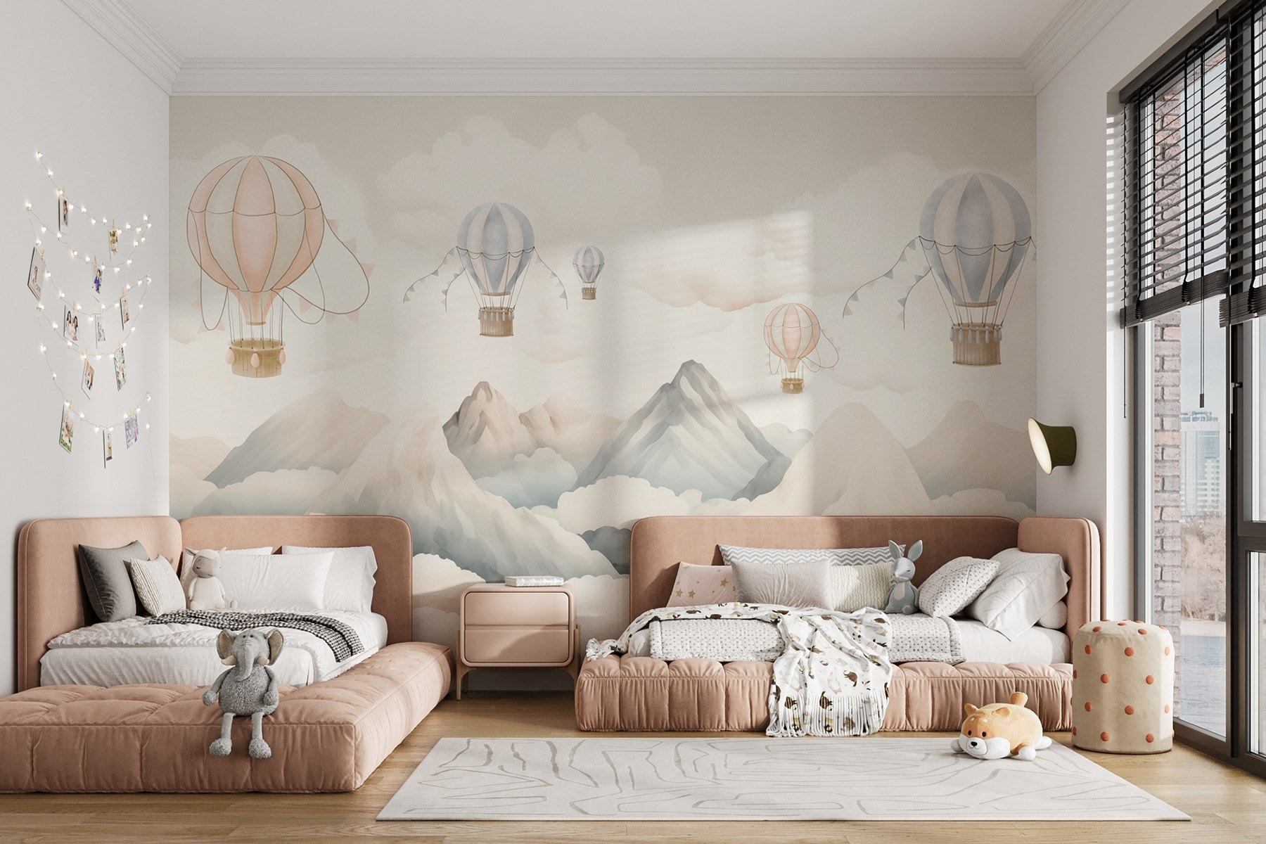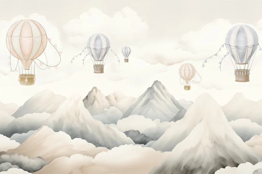 Imaginez que vous pénétrez dans un monde où des montgolfières dérivent paresseusement au-dessus de montagnes majestueuses, entourées de nuages doux et gonflés. Cette peinture murale apporte une ambiance sereine à n’importe quel espace, comme si vous regardiez par la fenêtre un paysage de rêve. Imaginez un coin confortable où vous siroteriez votre café du matin, inspiré par l’aventure qui vous attend juste derrière vos murs. Les douces couleurs pastel invitent à la chaleur et au calme, ce qui est parfait pour une chambre d’enfant ou un espace de vie décontracté. C’est le genre de peinture murale qui fait naître des rêves et vous invite à savourer les joies simples de la vie, comme celle de flotter dans les cieux.