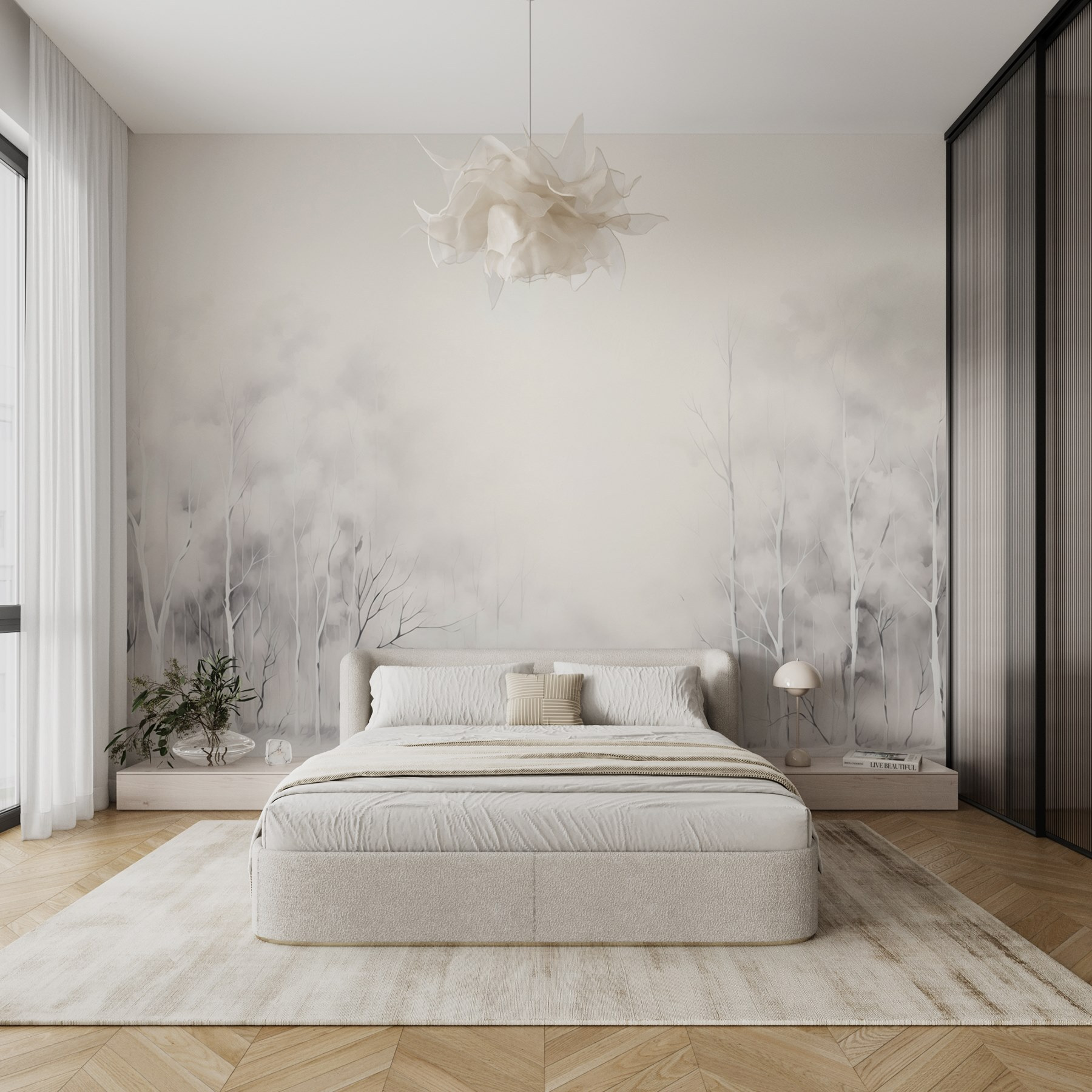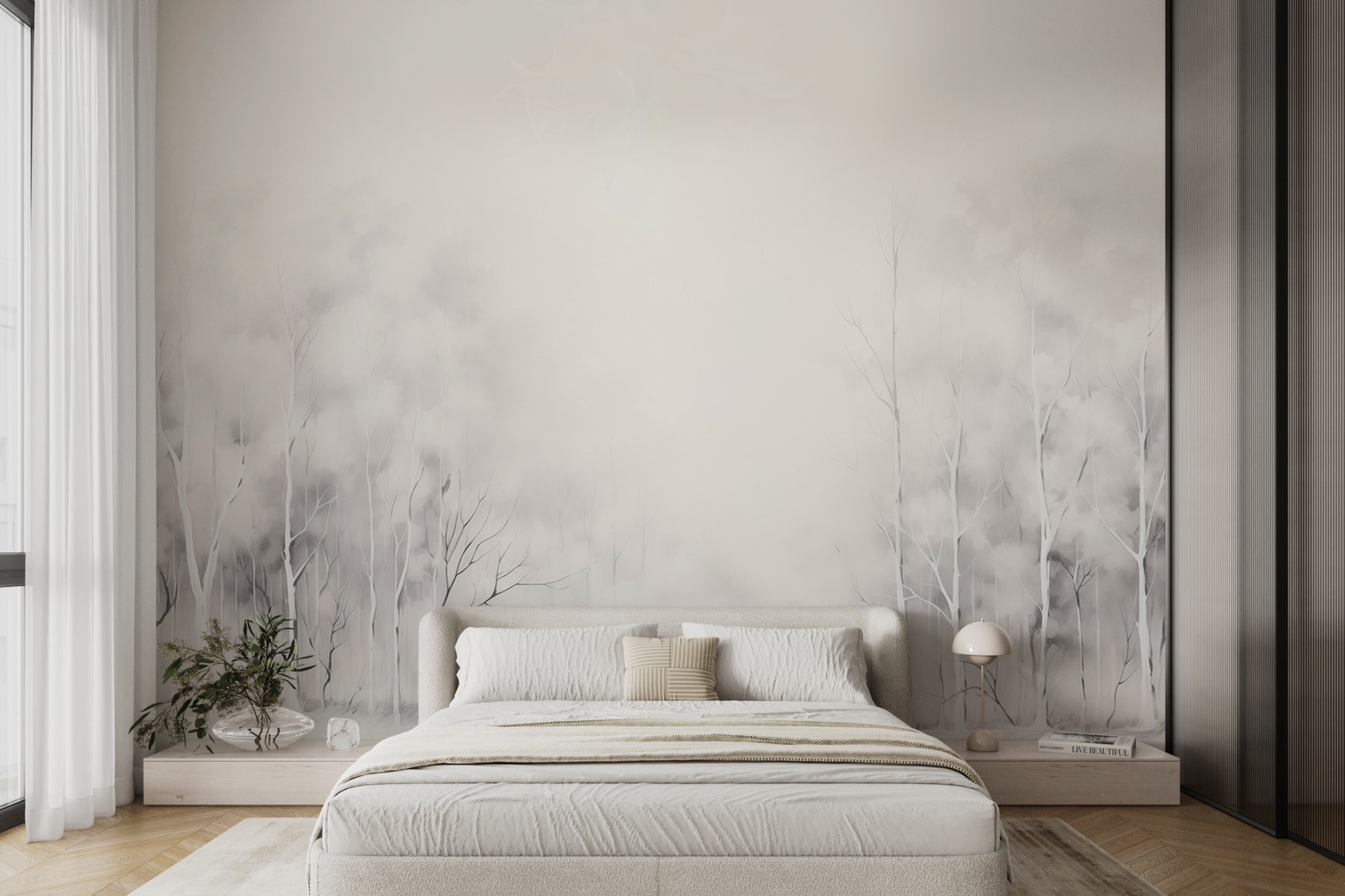 Apportez la beauté sereine d’une forêt enneigée directement sur vos murs avec cette charmante peinture murale représentant un groupe d’arbres. Imaginez que vous pénétrez dans un pays des merveilles hivernales à chaque fois que vous entrez dans la pièce. Les tons doux et feutrés créent une atmosphère paisible, parfaite pour se détendre après une longue journée. C’est comme si vous aviez le calme de la nature chez vous. Que vous sirotiez un chocolat sur le canapé ou que vous travailliez sur un projet douillet, cette peinture murale invite à la chaleur et à la tranquillité. De plus, vos amis et votre famille ne manqueront pas de vous poser des questions à son sujet – des points de discussion, quelqu’un ? Alors pourquoi ne pas laisser vos murs raconter des histoires pour vous ?