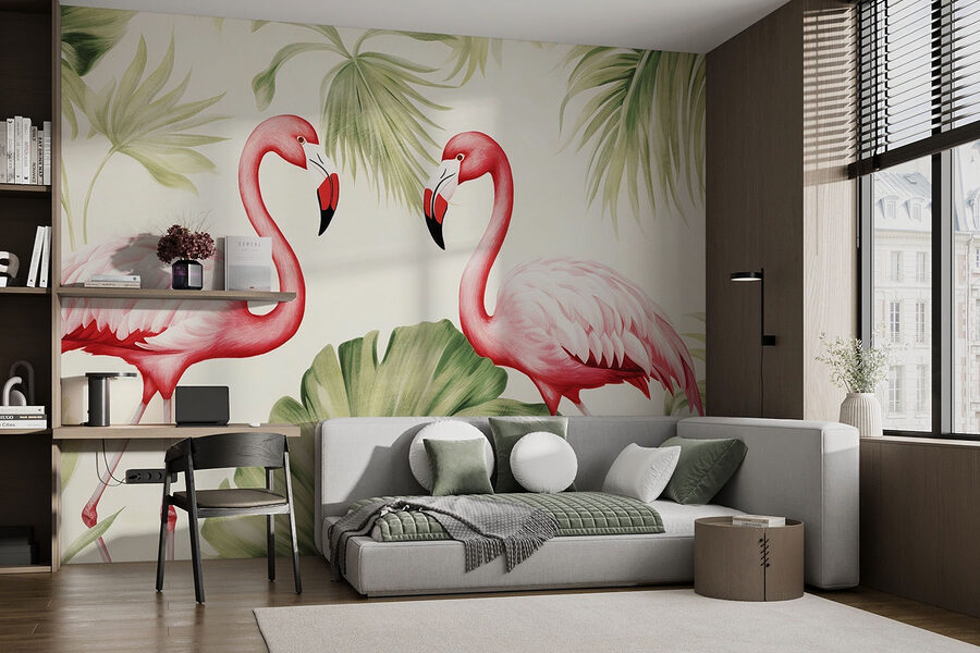 Transformez votre espace en un paradis tropical avec cette peinture murale vibrante représentant un couple de flamants roses vifs entourés de feuilles vertes luxuriantes. C’est comme si vous aviez des mini-vacances chez vous ! Imaginez que vous vous réveillez chaque jour avec ces oiseaux excentriques posant de manière ludique sur une toile de fond douce. Les couleurs fraîches donnent de la vie à n’importe quelle pièce, la rendant accueillante et amusante. Qu’il s’agisse d’un salon confortable ou d’un espace de travail inspirant, cette peinture murale ajoute une touche de personnalité. Les amis et la famille ne manqueront pas d’en parler. Il se peut même que vous aperceviez un cocktail de flamants roses dans votre avenir !