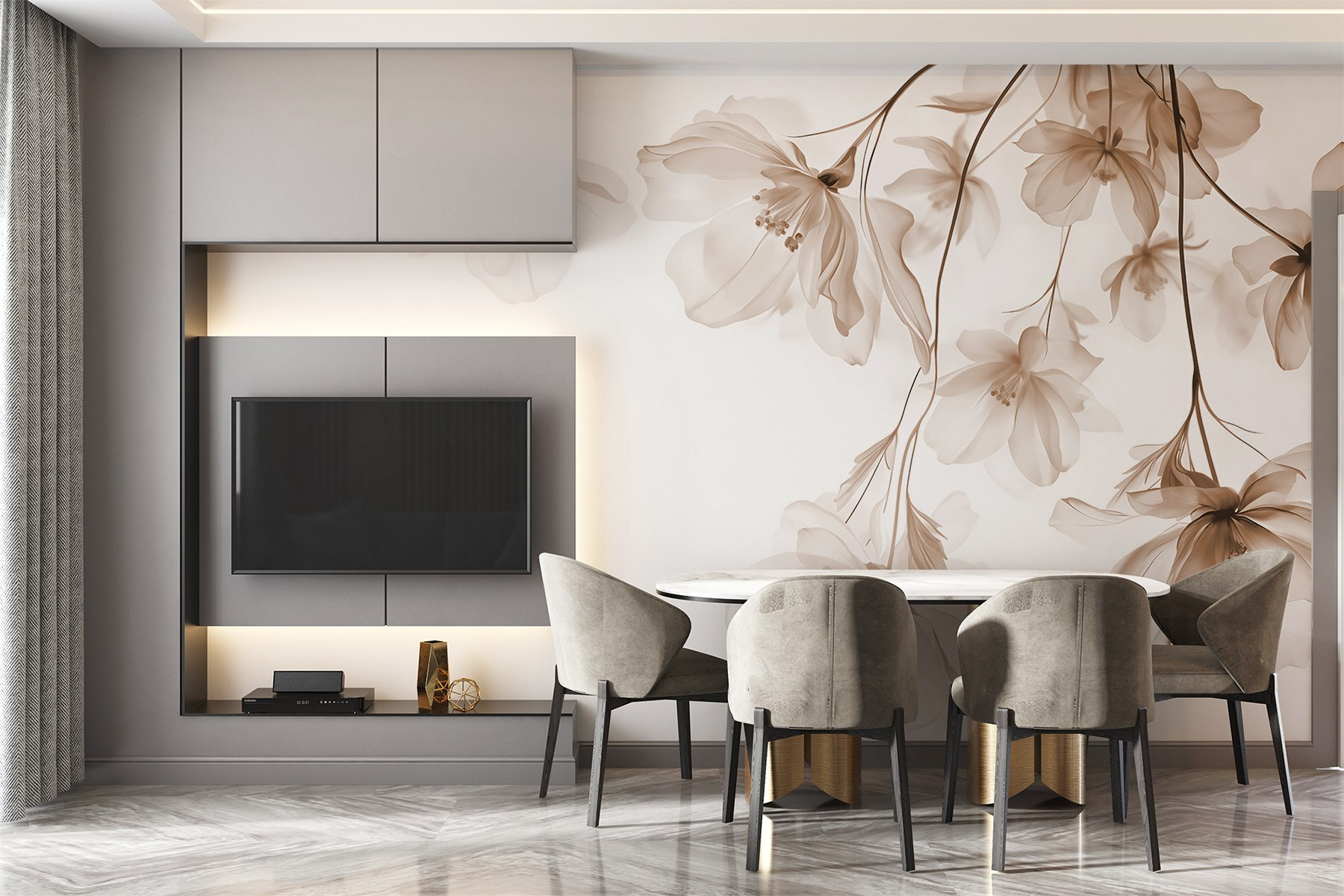 Transformez n’importe quel espace avec cette superbe peinture murale représentant des fleurs délicates dans des teintes douces. Imaginez que vous pénétrez dans un jardin serein depuis votre salon – chaque fleur murmure la tranquillité, comme si une peinture de la nature avait pris vie. Il ne s’agit pas seulement d’un décor, mais d’une expérience. Imaginez que vous recevez des amis et que leurs conversations s’estompent au fur et à mesure qu’ils admirent ce magnifique spectacle. Les couleurs douces apportent de la chaleur à la pièce, la rendant ouverte et accueillante. Parfait pour créer une atmosphère de retraite paisible. Un petit coin de paradis sur votre mur.