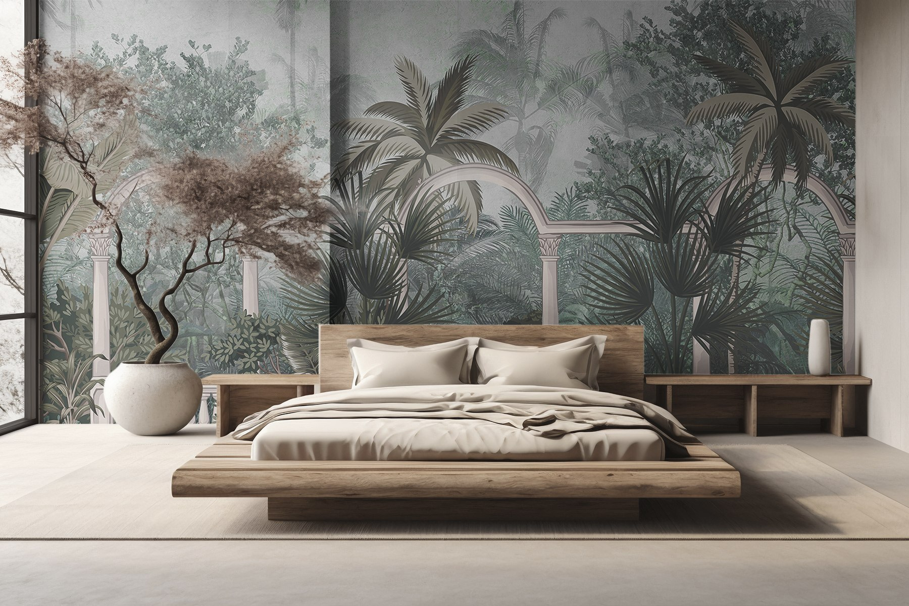 Transformez votre espace en une escapade tropicale avec cette superbe peinture murale représentant des palmiers luxuriants et un charmant balcon. Imaginez que vous sirotiez votre café du matin en vous prélassant dans un mini paradis – c’est comme si vous invitiez l’été à l’intérieur, tout au long de l’année ! La verdure délicate et les détails architecturaux créent une ambiance apaisante, parfaite pour les jours où vous avez besoin de vous évader un peu de la réalité. Sentez la douce brise (même s’il ne s’agit que du ventilateur), car cette peinture murale donne un ton apaisant. C’est comme des vacances sans le billet d’avion. Parfait pour les recoins douillets ou même pour ce grand mur vide qui ne demande qu’à avoir de la personnalité ! Adoptez la tranquillité et laissez la nature inspirer votre décor.