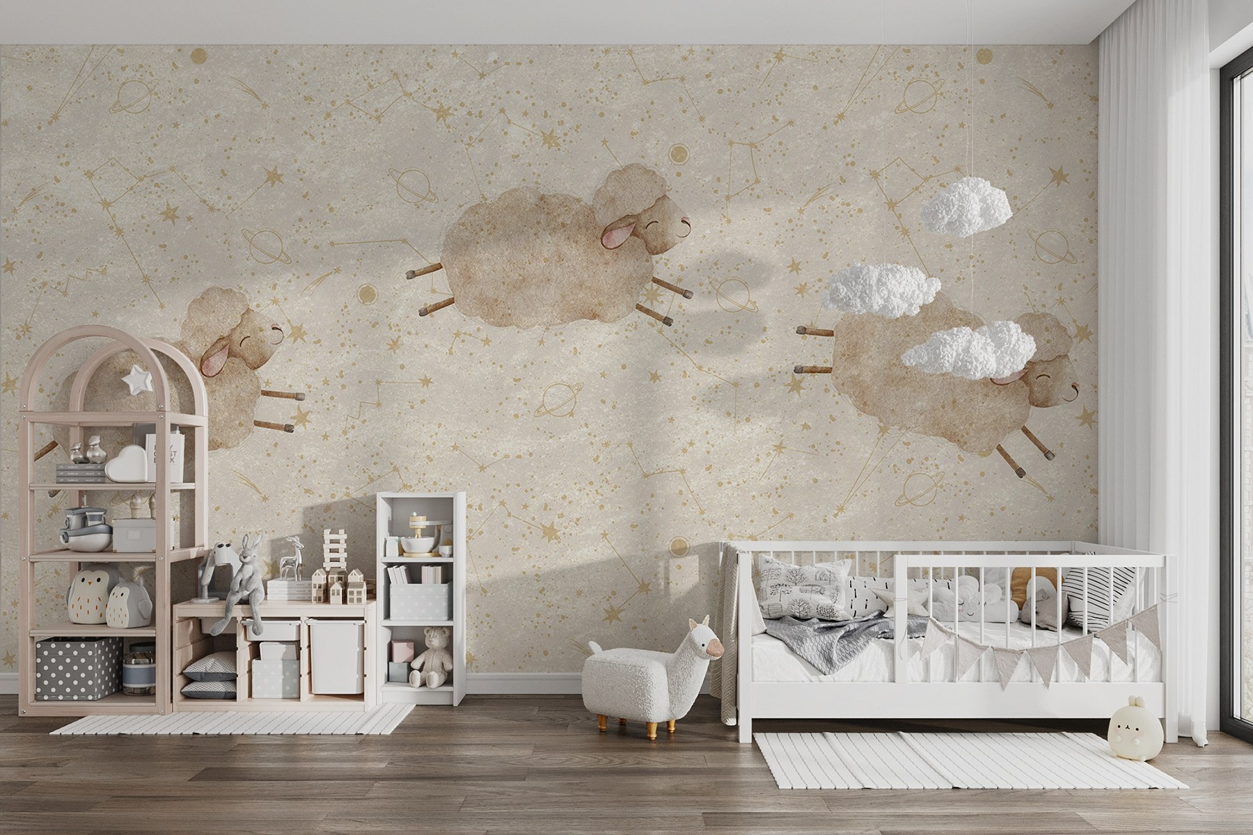 Transformez n’importe quel espace avec cette charmante peinture murale représentant un groupe de moutons enjoués gambadant sur une douce toile de fond blanche. Imaginez que vous entrez dans une pièce où ces charmants petits semblent vous inviter à rejoindre leur monde fantaisiste. Parfaite pour une chambre d’enfant ou un coin douillet, cette peinture murale ajoute une touche de gaieté à laquelle il est difficile de résister. Imaginez les rires des enfants qui désignent les moutons et rêvent d’histoires sur leurs aventures. Avec des motifs célestes en arrière-plan, c’est une belle invitation à s’évader au pays des rêves. Le juste mélange d’amusement et de chaleur en fait un complément parfait à tout décor !