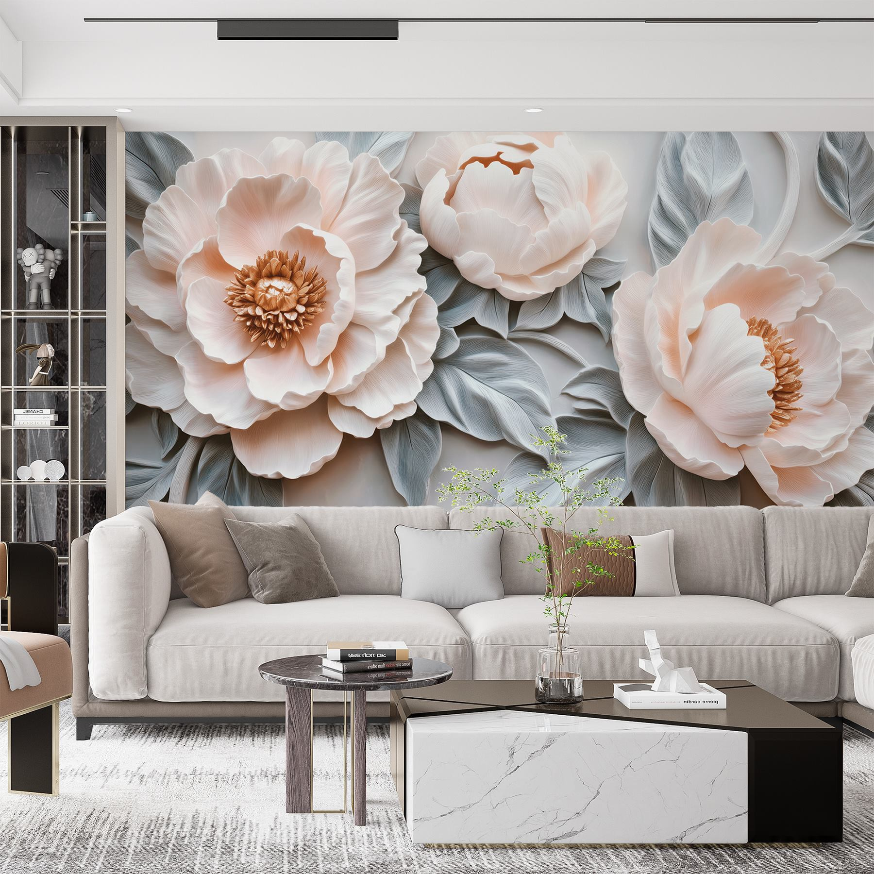 Transformez n’importe quel espace en une oasis de sérénité grâce à cette superbe peinture murale représentant un joli groupe de fleurs blanches entourées de feuilles. Imaginez-la en train d’égayer un coin lecture confortable ou de donner du charme à un couloir. Les teintes douces invitent au calme, créant une ambiance qui fait du bien, comme une douce étreinte de la nature. Imaginez que vous sirotiez votre café du matin avec ces fleurs en toile de fond : le bonheur total ! C’est parfait pour tous ceux qui souhaitent ajouter une touche de beauté sans envahir l’espace. Qui ne voudrait pas se réveiller chaque jour dans un rêve floral ?